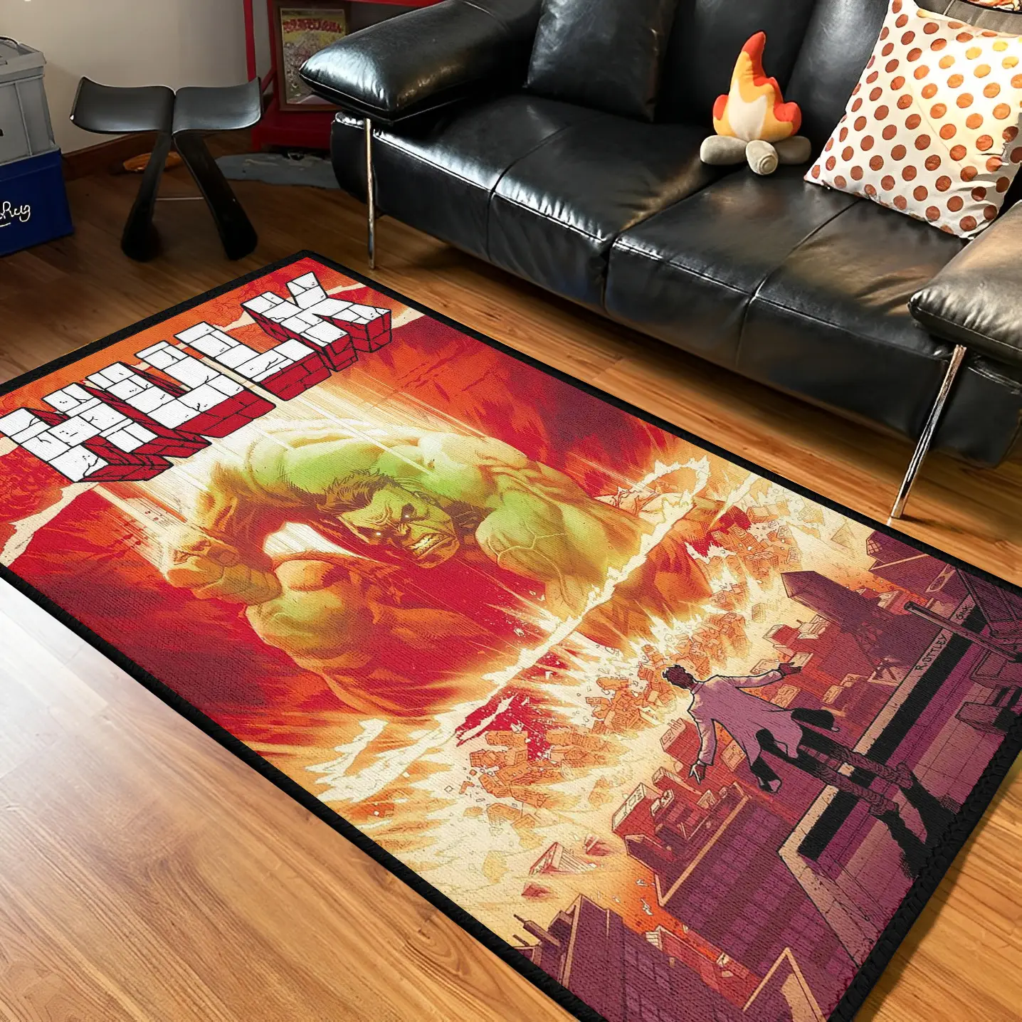 The Hulk Comic Cover Rug delivers explosive Marvel style with vintage comic book artwork. It’s the ultimate decor piece for superhero bedrooms or comic fan zones.