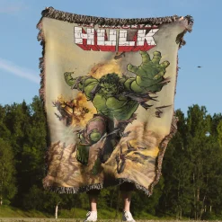 Hulk woven tapestry throw blanket, offering fun wall art and unique room decor, perfect as a collectible accent for Marvel fans.