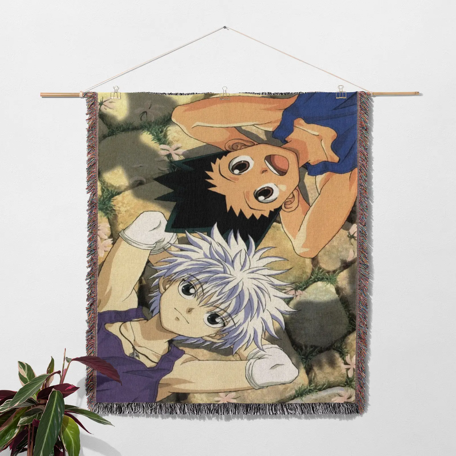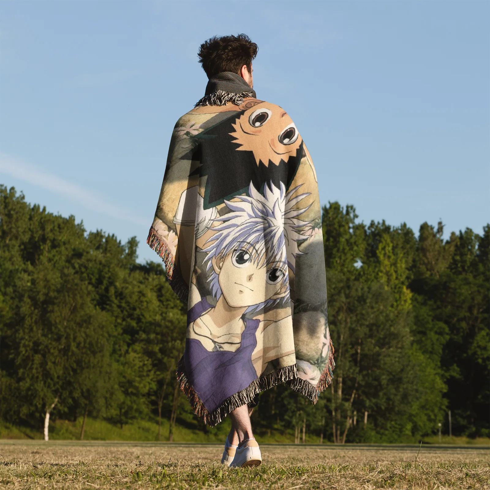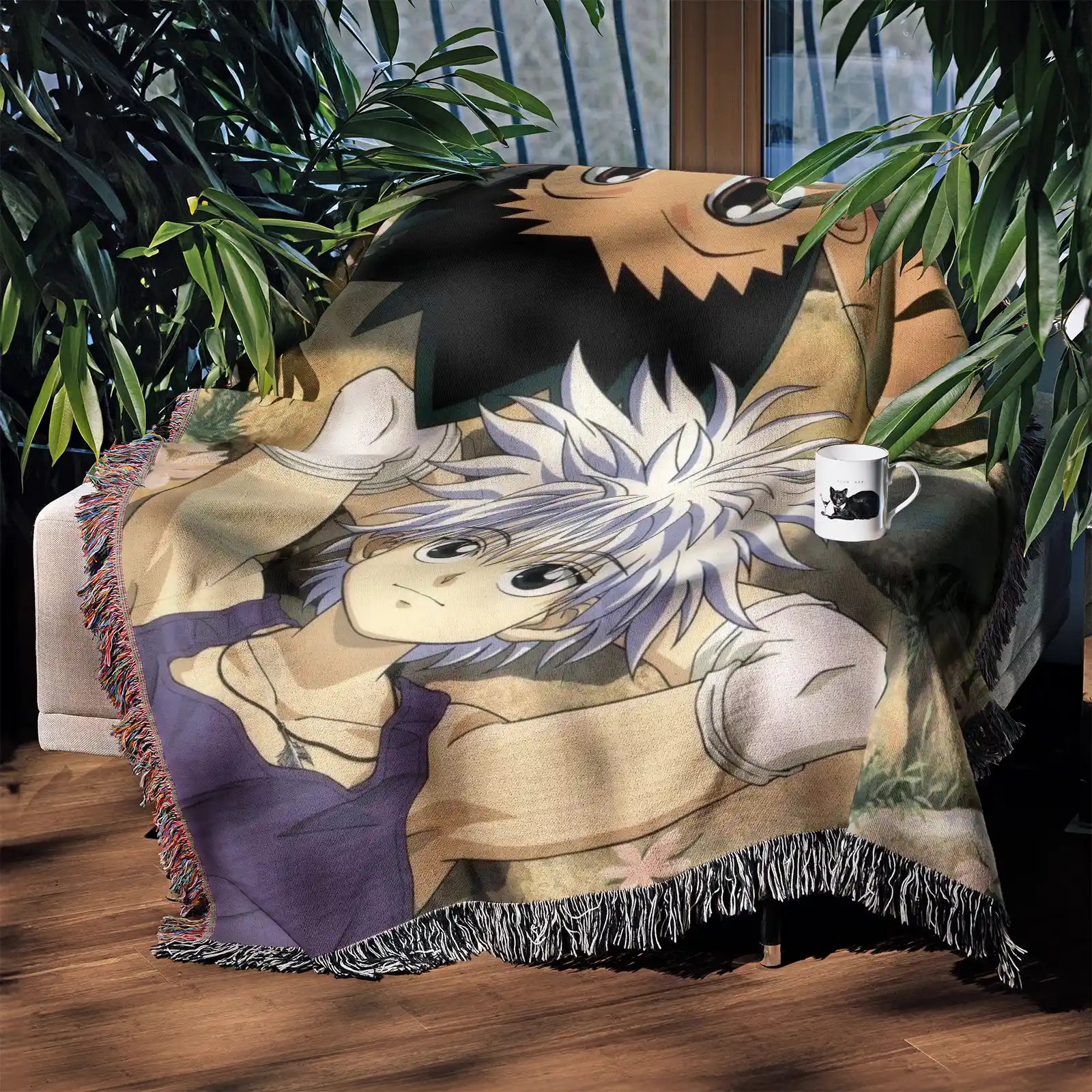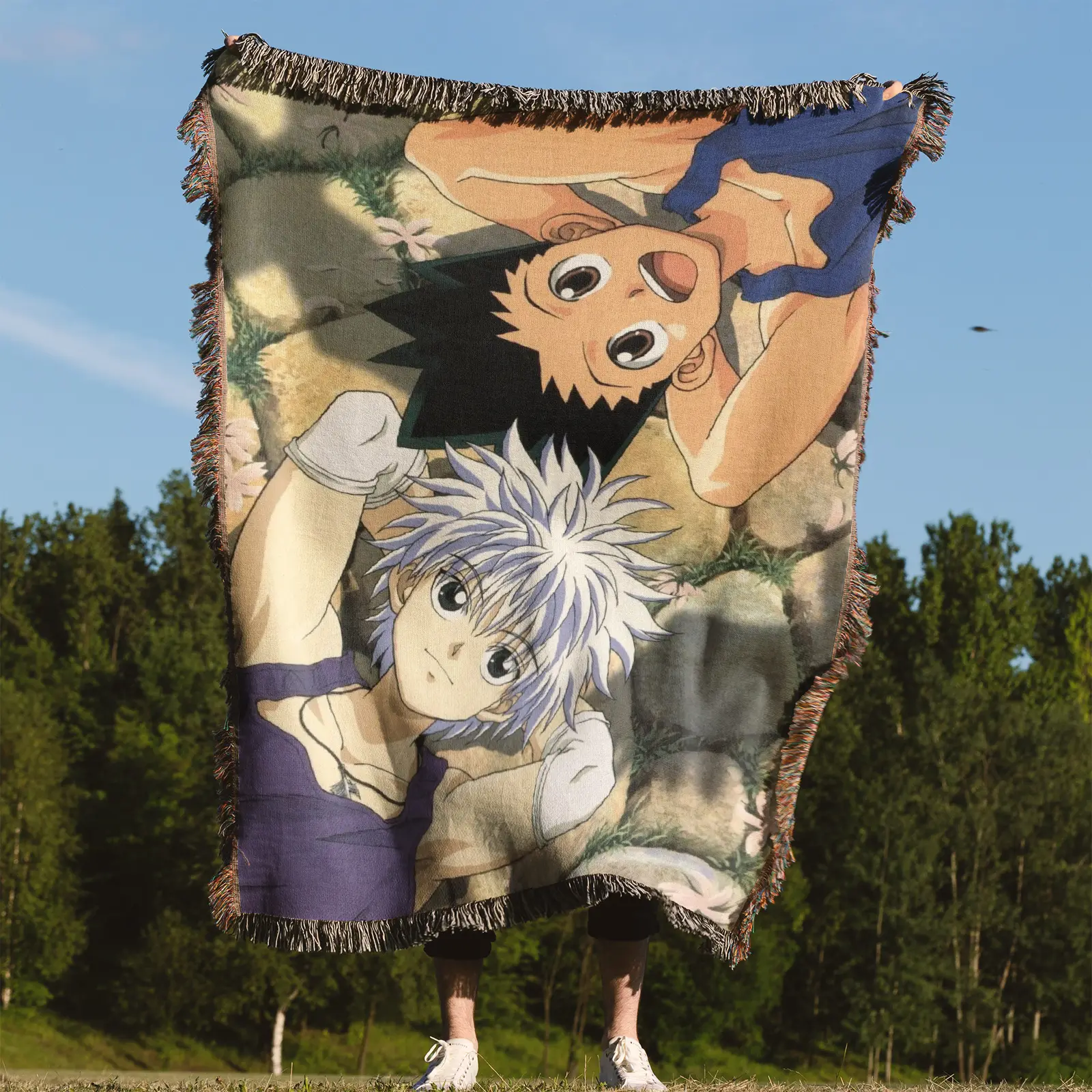 Highlight iconic characters with the Hunter X Hunter Woven Tapestry Throw Blanket. Perfect as throw, wall art, or room decor for fans and collectors.