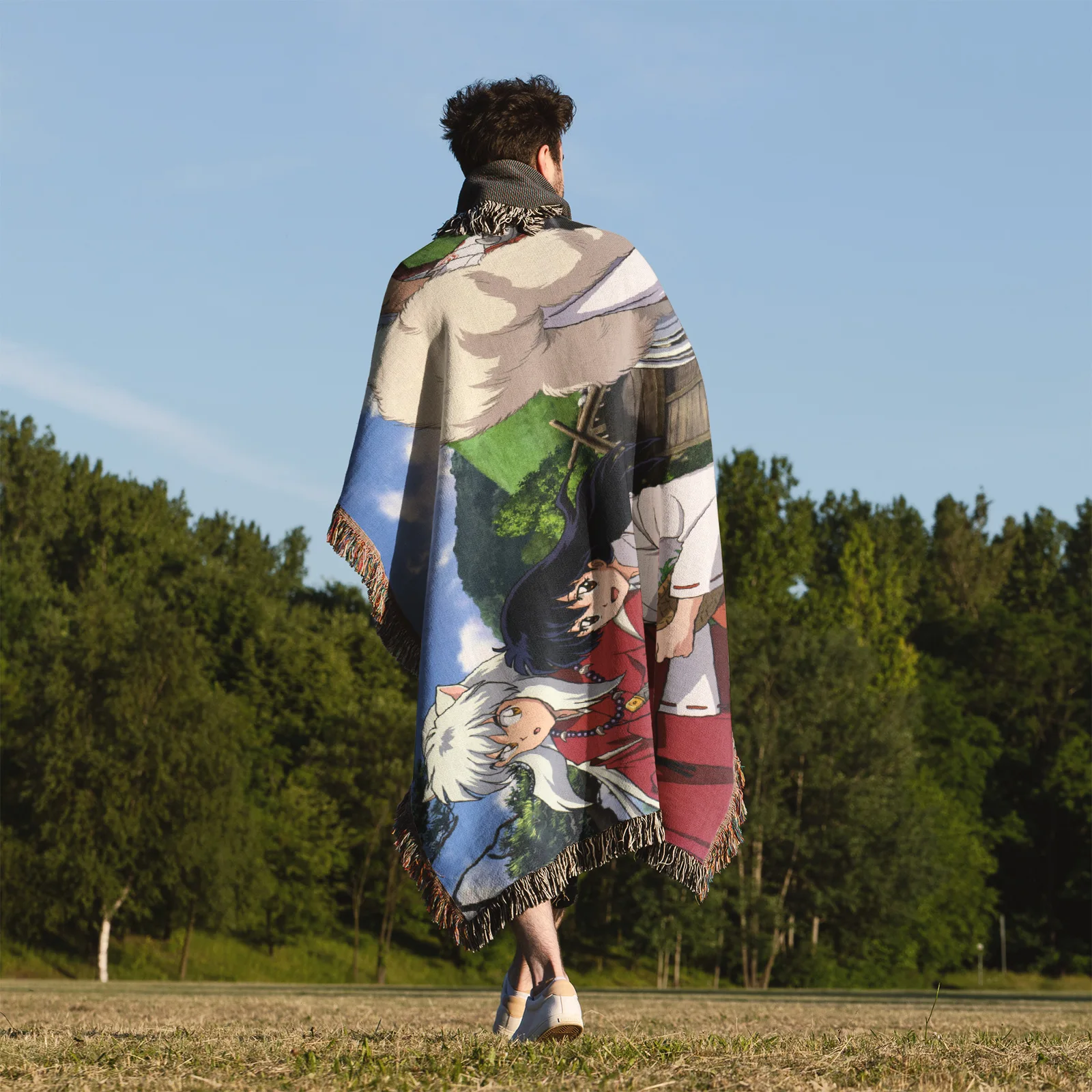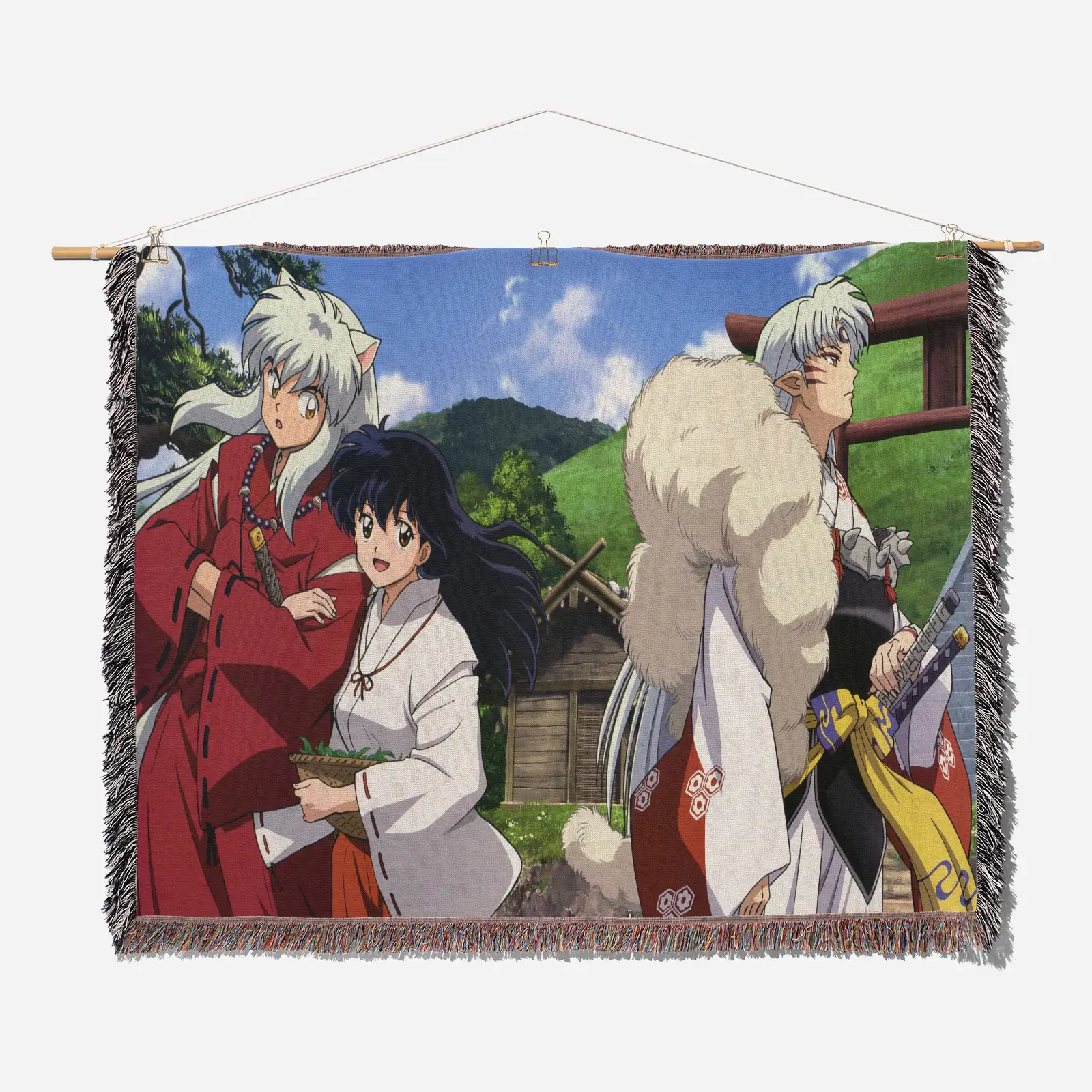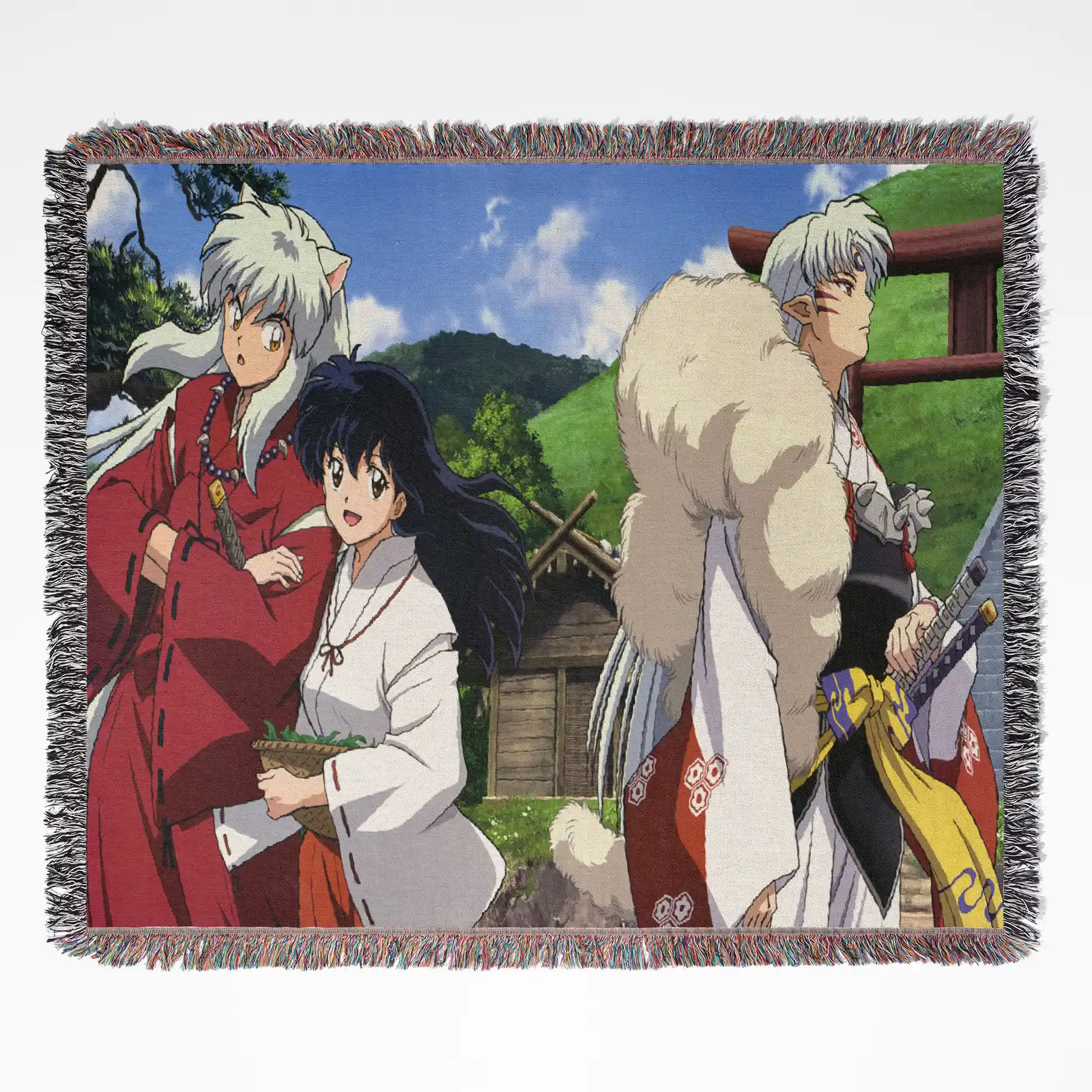Enhance your space with the Inuyasha Woven Tapestry Throw Blanket. Perfect as a stylish room accent, wall art, or gift idea for anime fans.