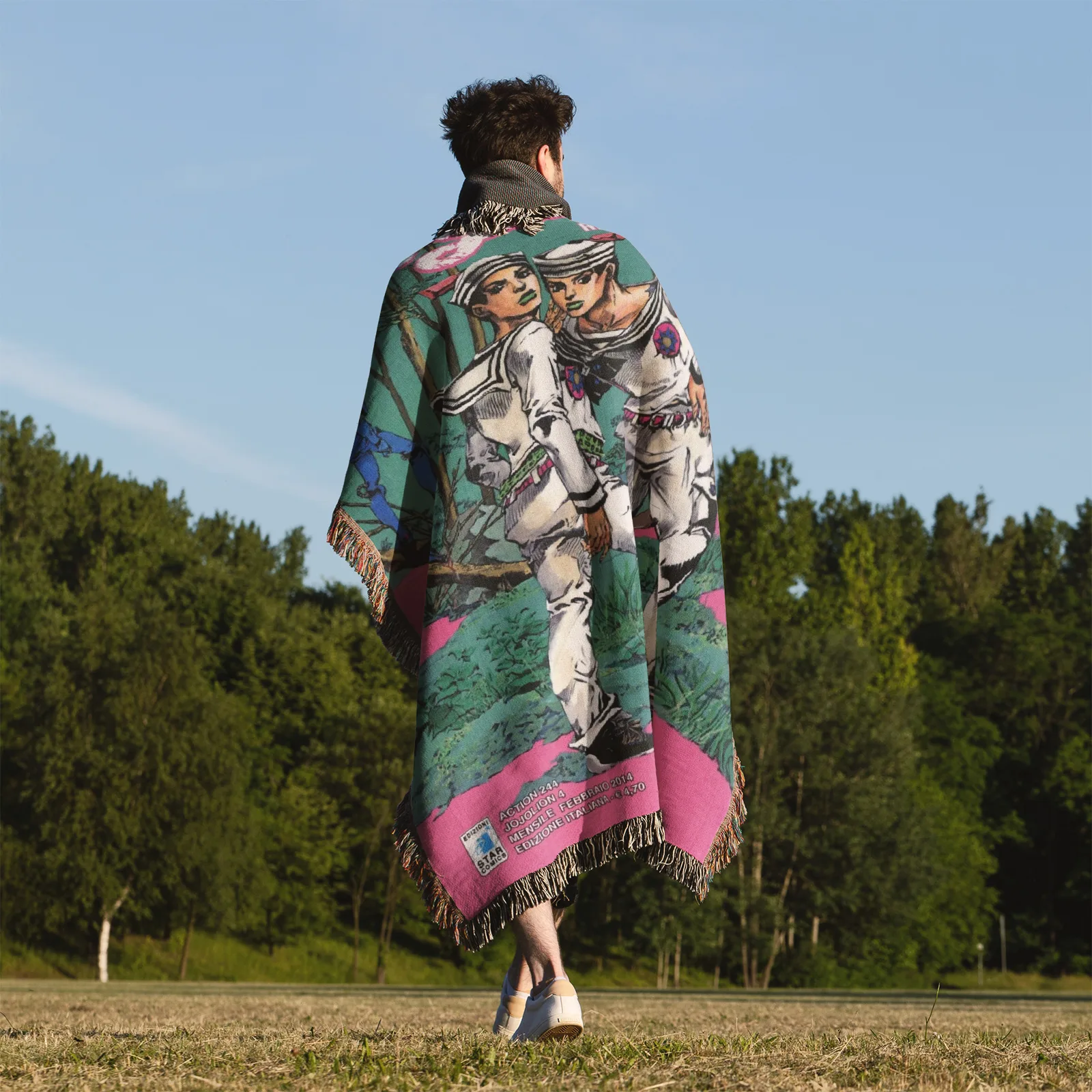 JoJo Manga Cover Adventure Woven Tapestry Throw Blanket – Iconic Room Accent, Wall Art & Home Decor