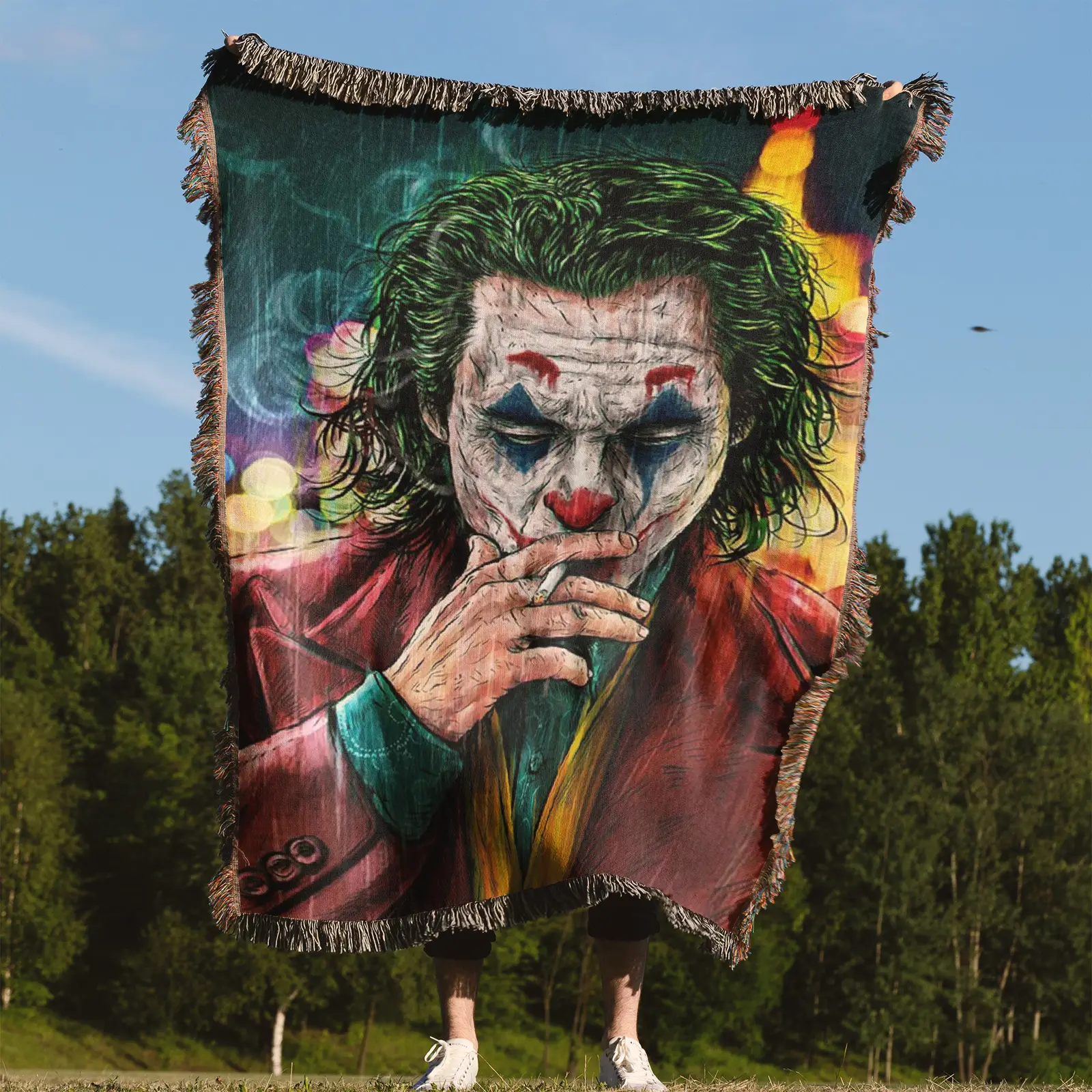 Joker Woven Tapestry Throw Blanket – Colorful Wall Art, Unique Room Decor, Collectible Merch