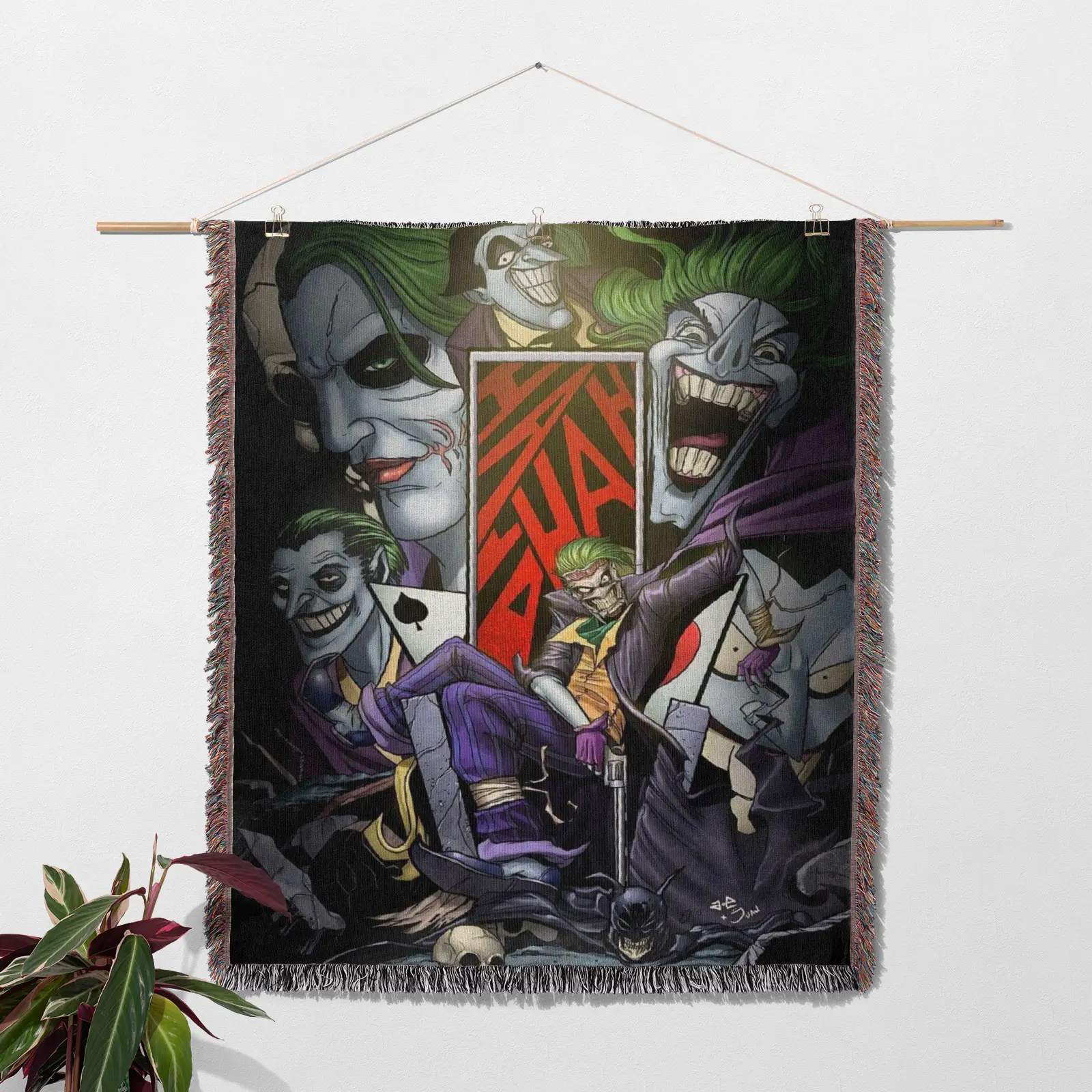 Joker Woven Tapestry Throw Blanket – Colorful Wall Art, Unique Room Decor, Collectible Merch