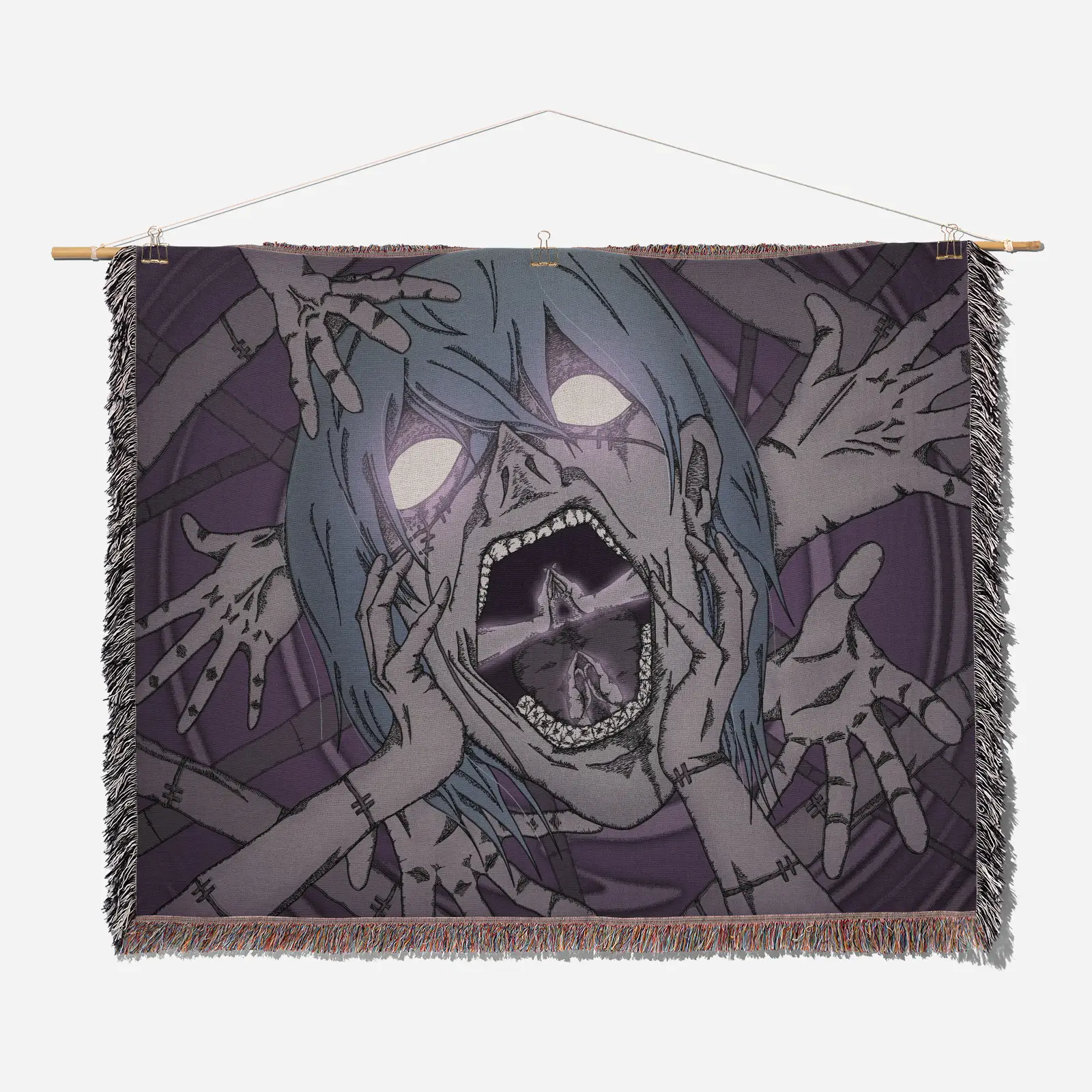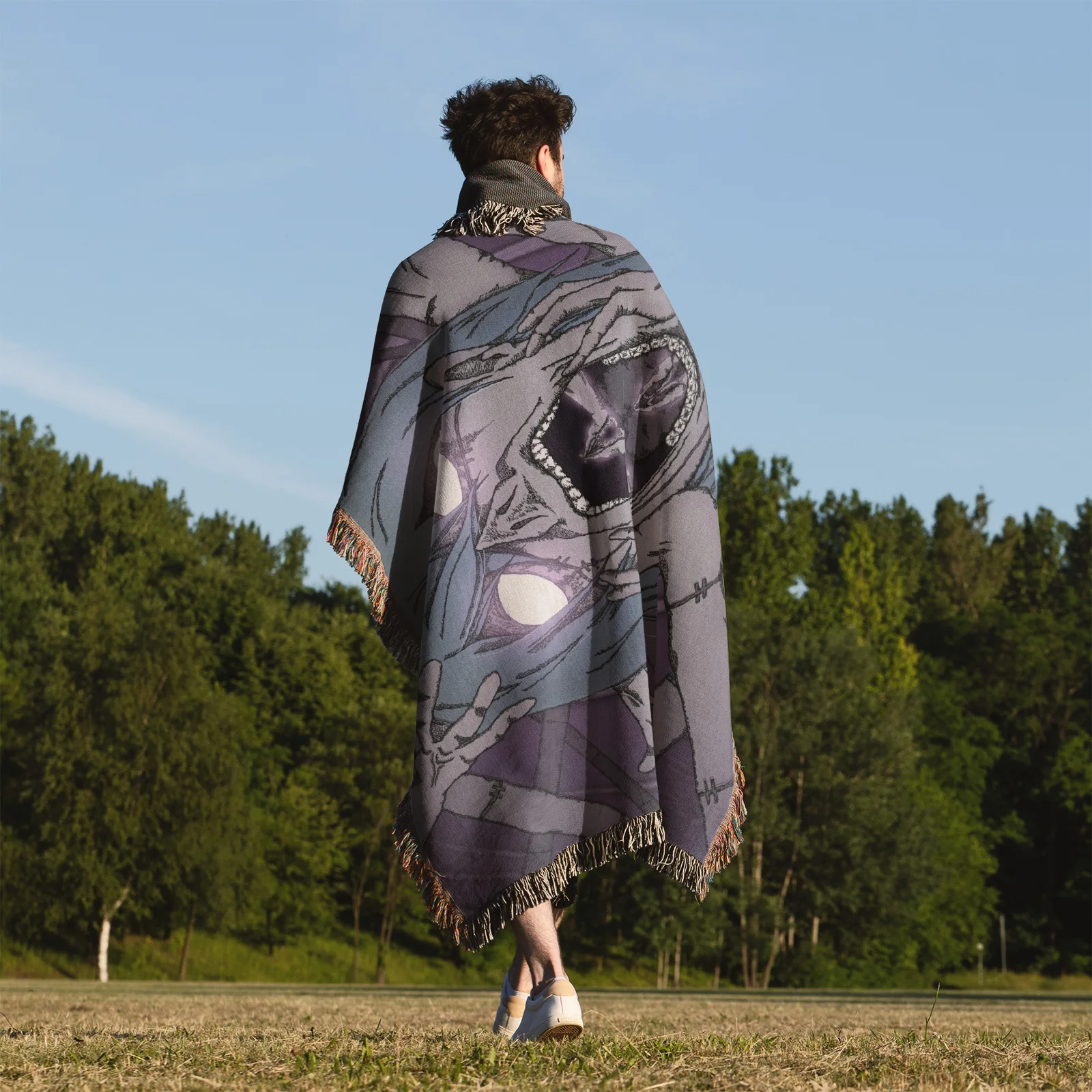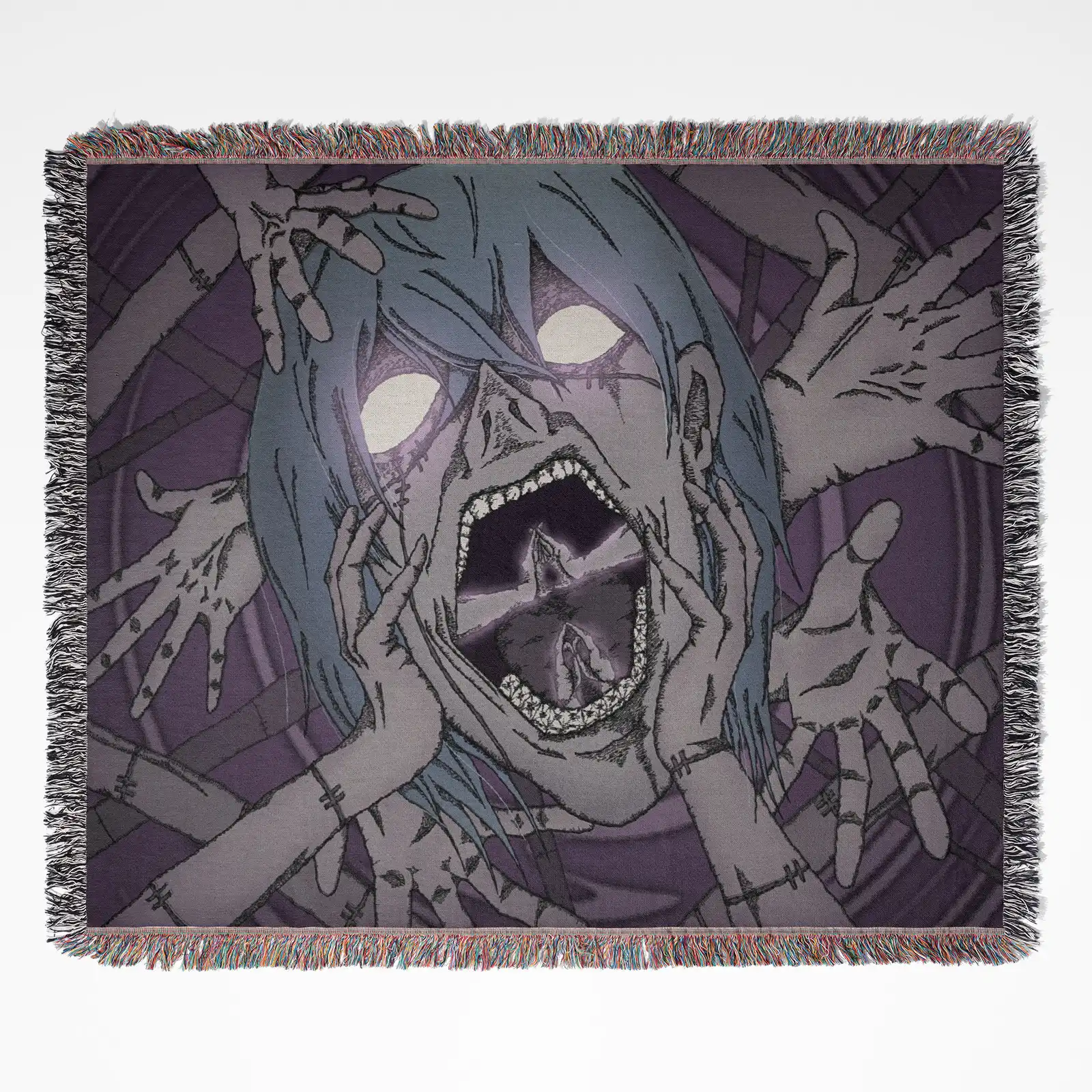 Unique and cozy, the Jujutsu Kaisen Mahito Woven Tapestry Throw Blanket is perfect as home decor, wall art, or throw for fans of the series.