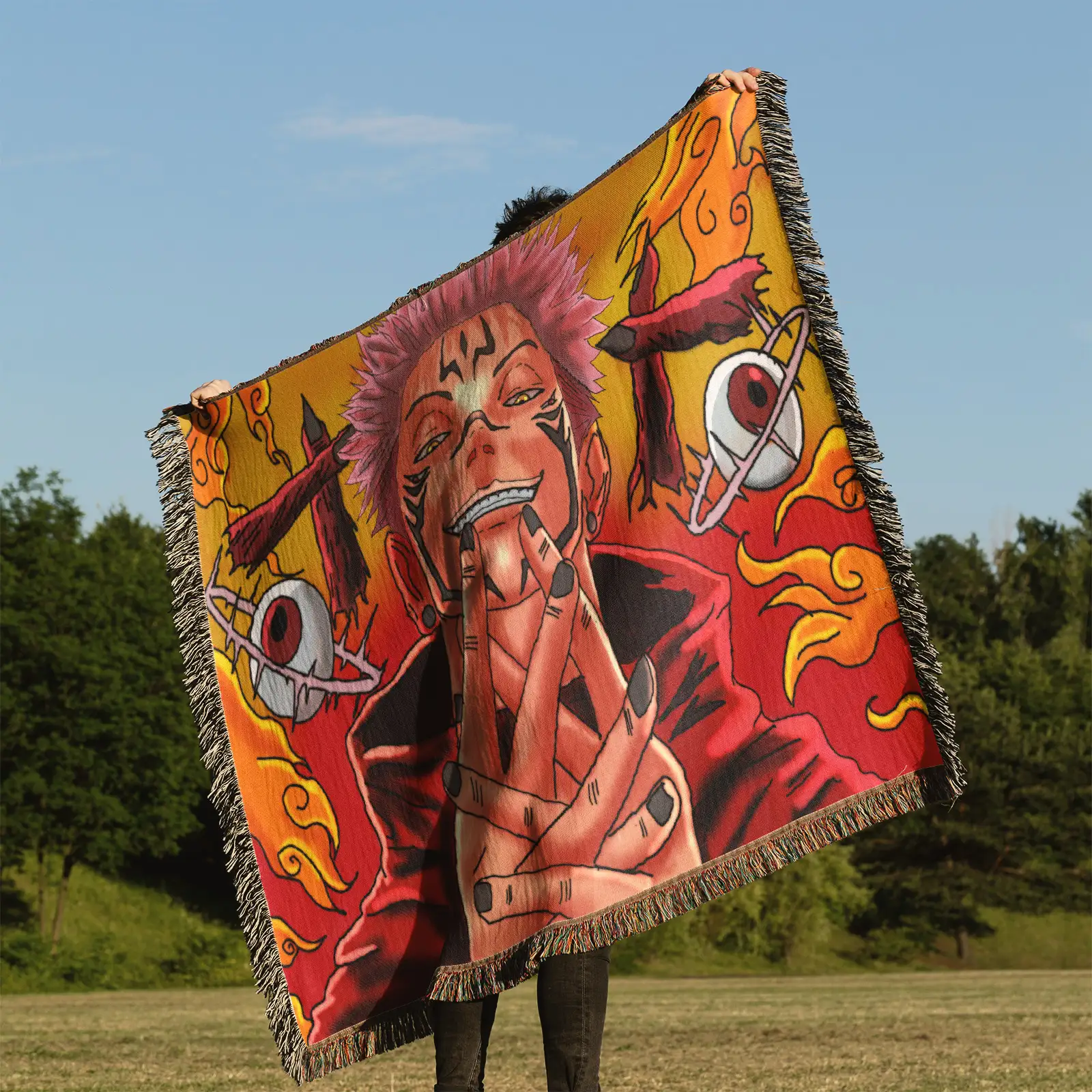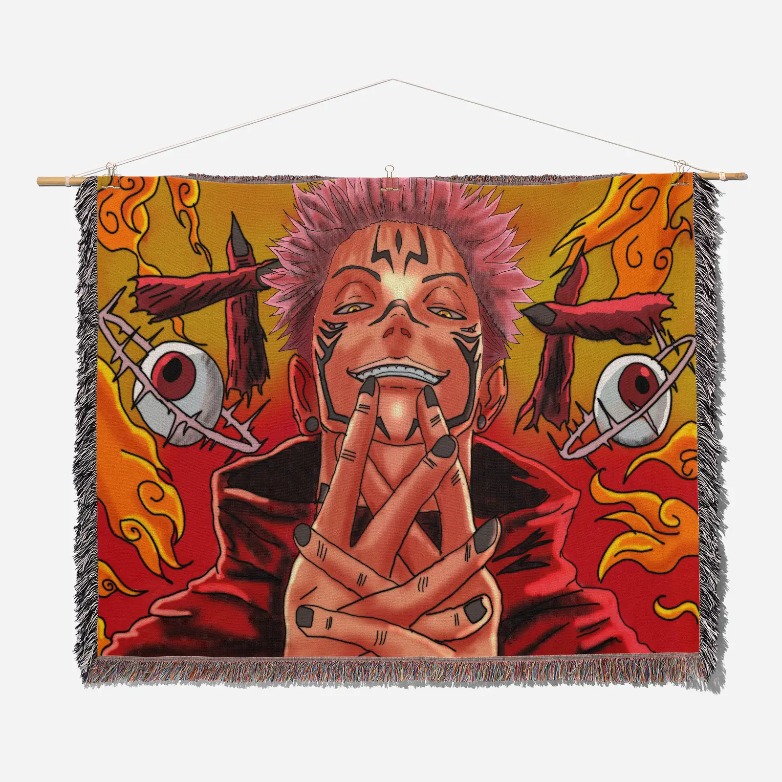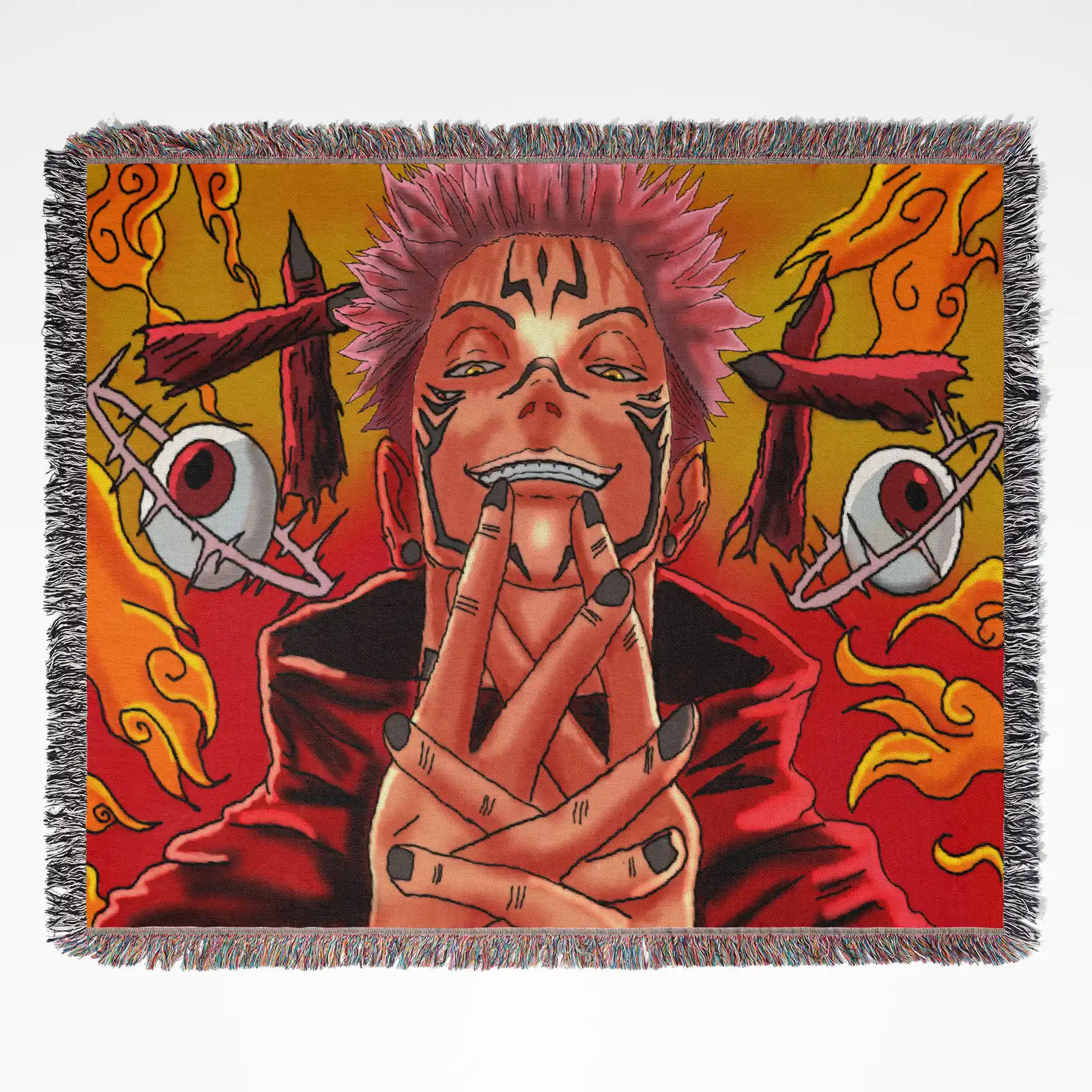 JJK Sukuna Woven Tapestry Throw Blanket – Bold Wall Hanging, Room & Home Decor, Collectible Gift