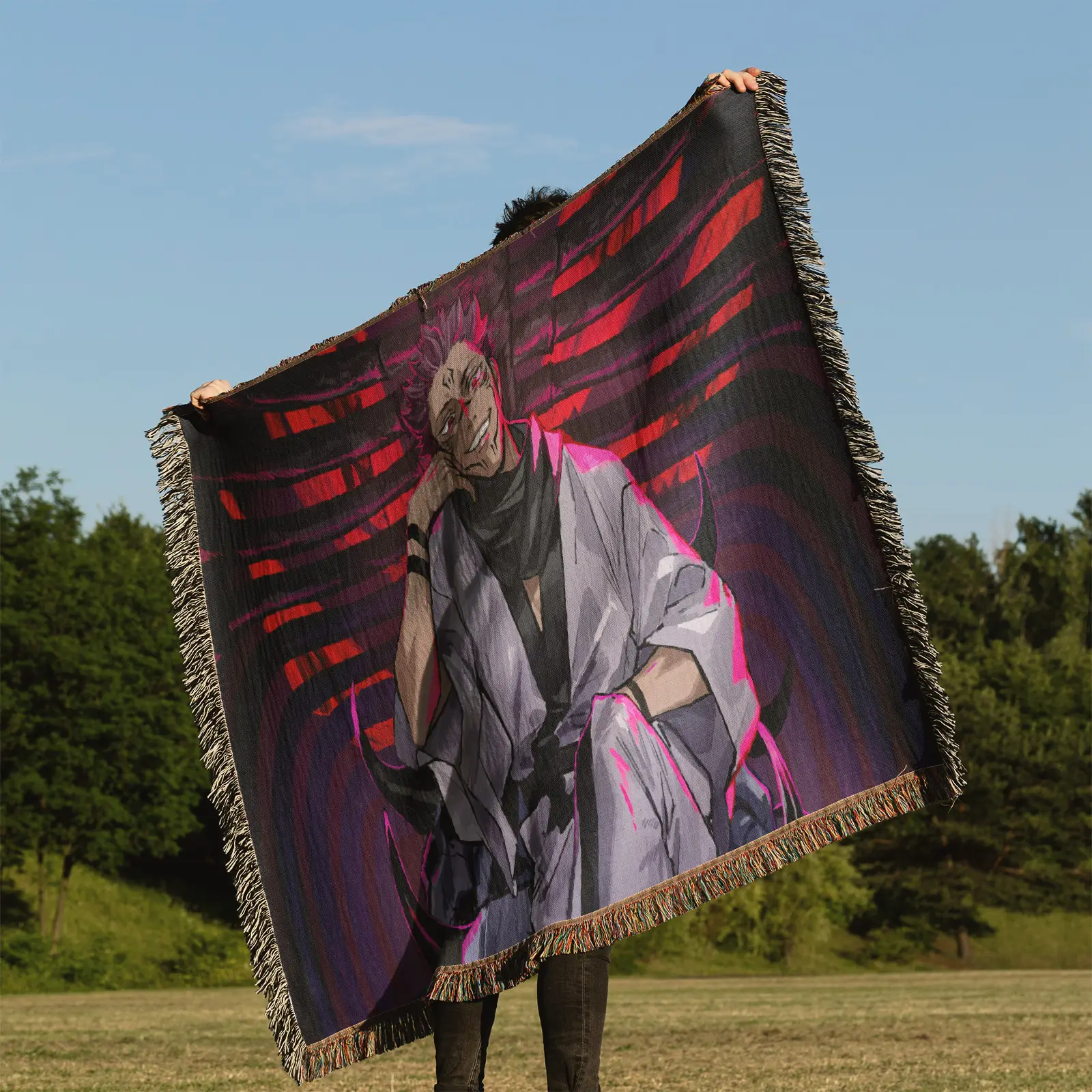 JJK Sukuna Woven Tapestry Throw Blanket – Bold Wall Hanging, Room & Home Decor, Collectible Gift