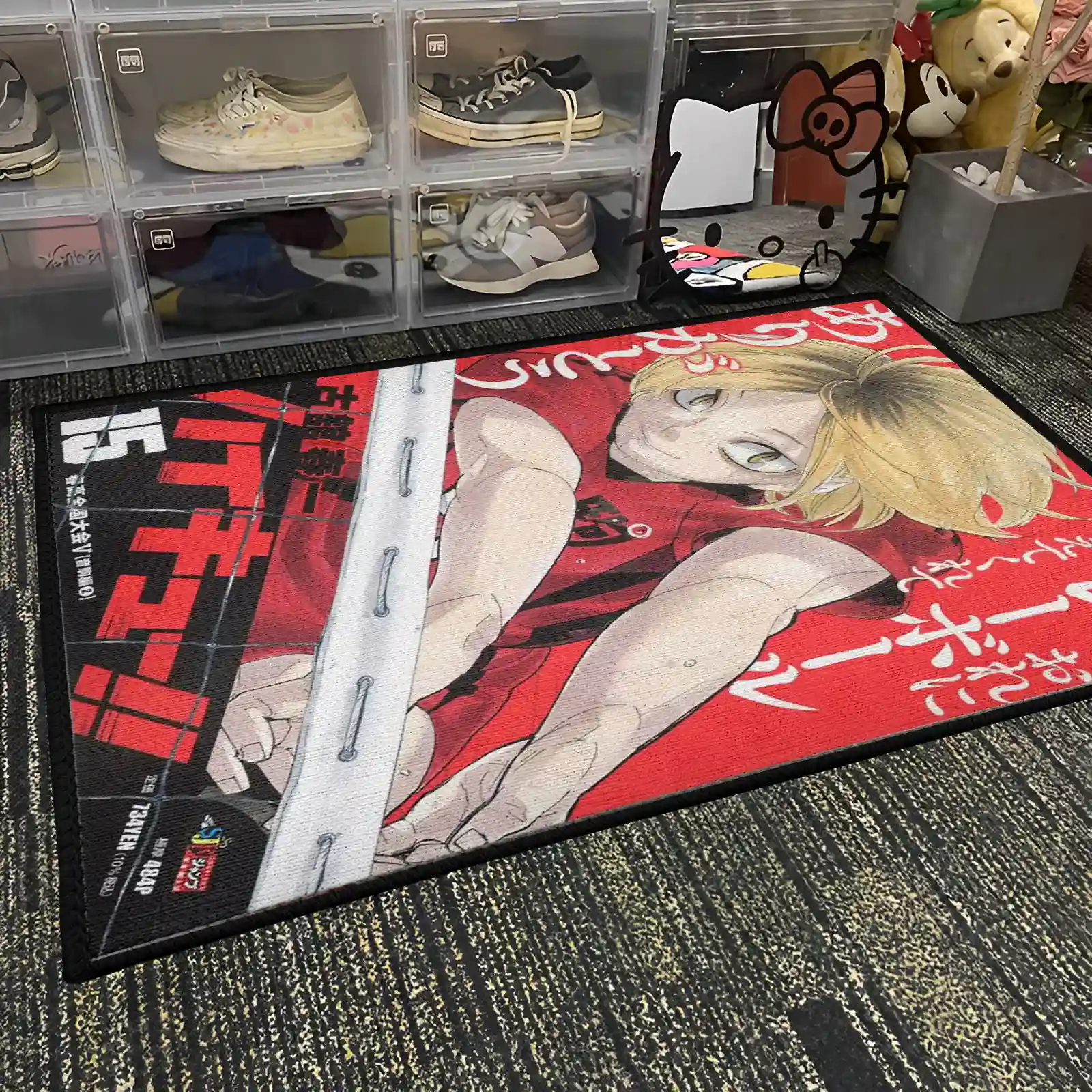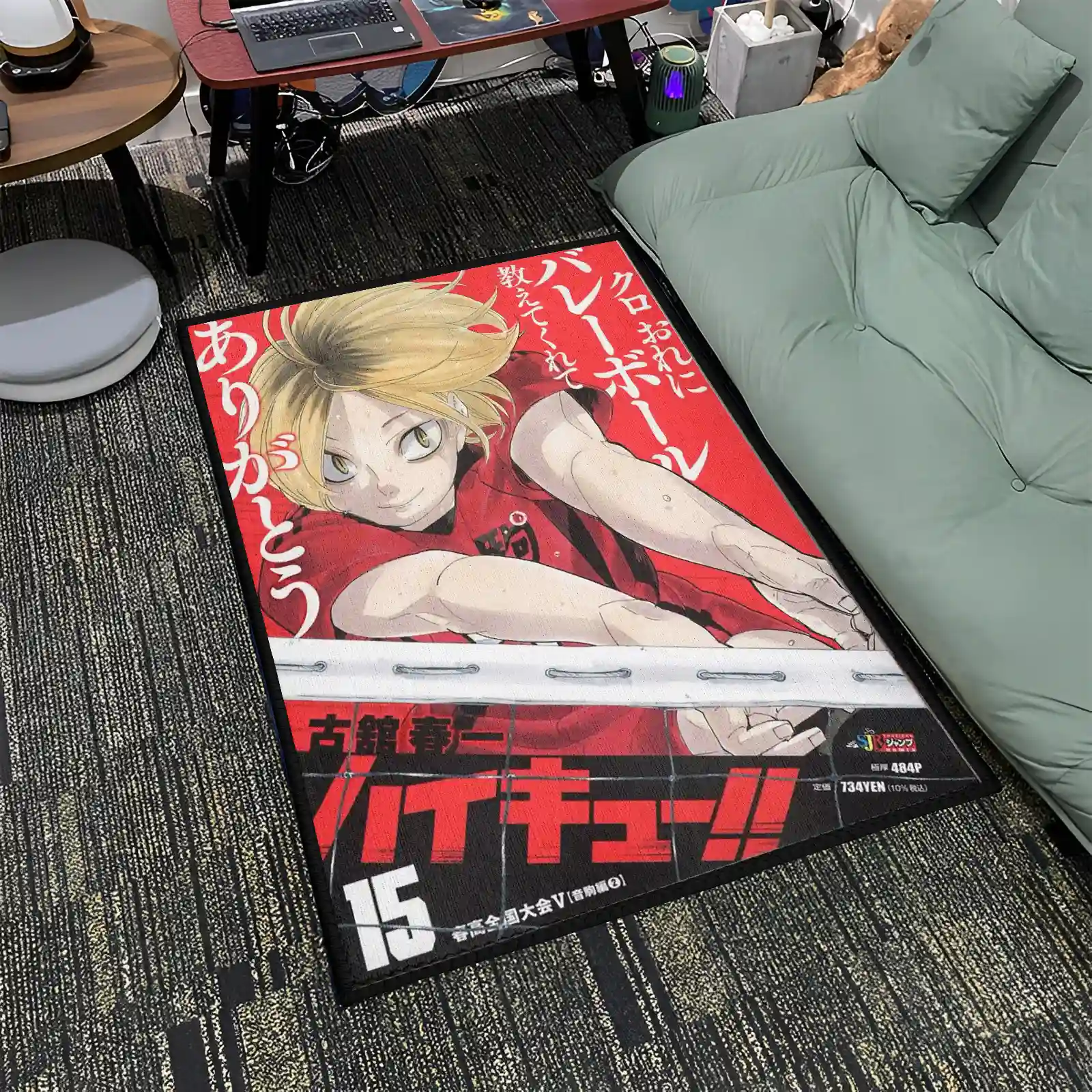 The Kenma Rug adds stylish anime decor to gaming rooms or bedrooms. Perfect for Haikyuu fans who love this cool setter character.