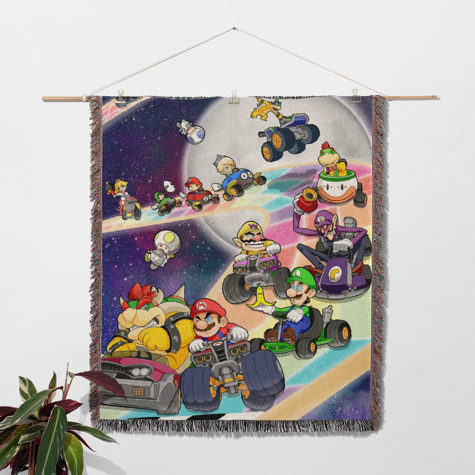 Mario Kart Woven Tapestry Throw Blanket – Fun Wall Art, Cozy Room Decor, Home Decor, Perfect Gift