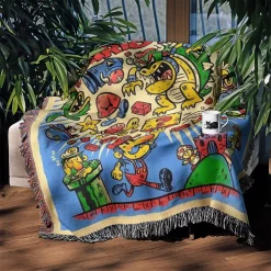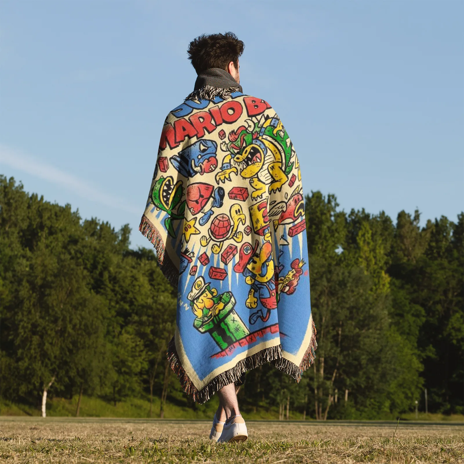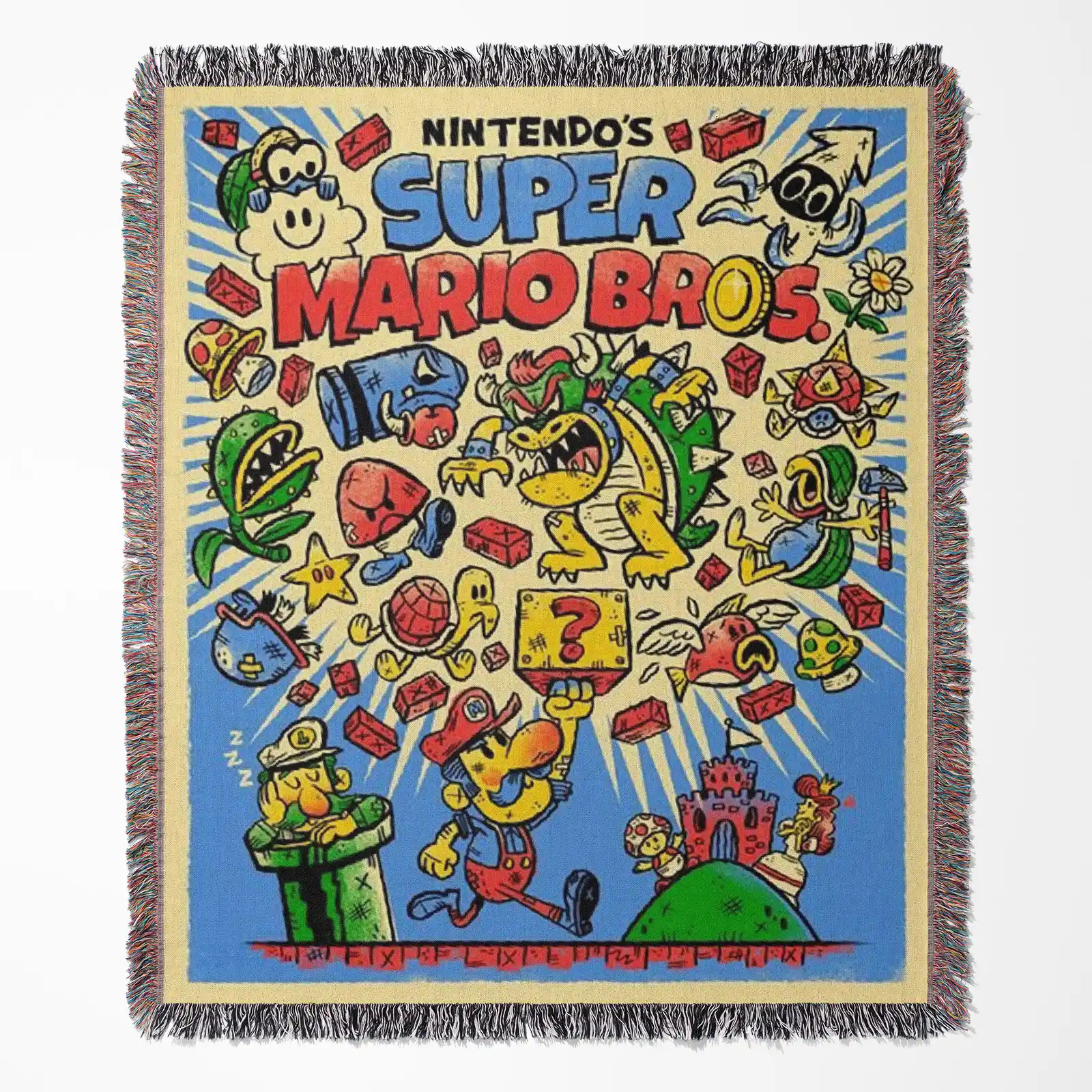 Mario Retro Poster Woven Tapestry Throw Blanket – Stylish Wall Rug, Room Decor, Collectible Merch