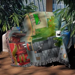 Mario woven tapestry throw blanket, designed with cute wall art and cozy home decor, making it the perfect gift for Mario fans.