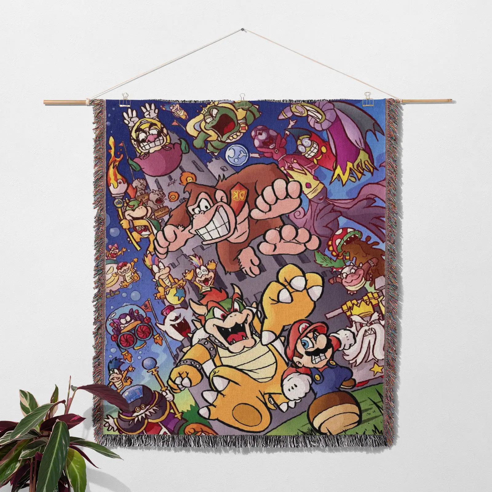 Mario Woven Tapestry Throw Blanket – Cute Wall Art, Room Decor, Picnic Mat, Perfect Collectible