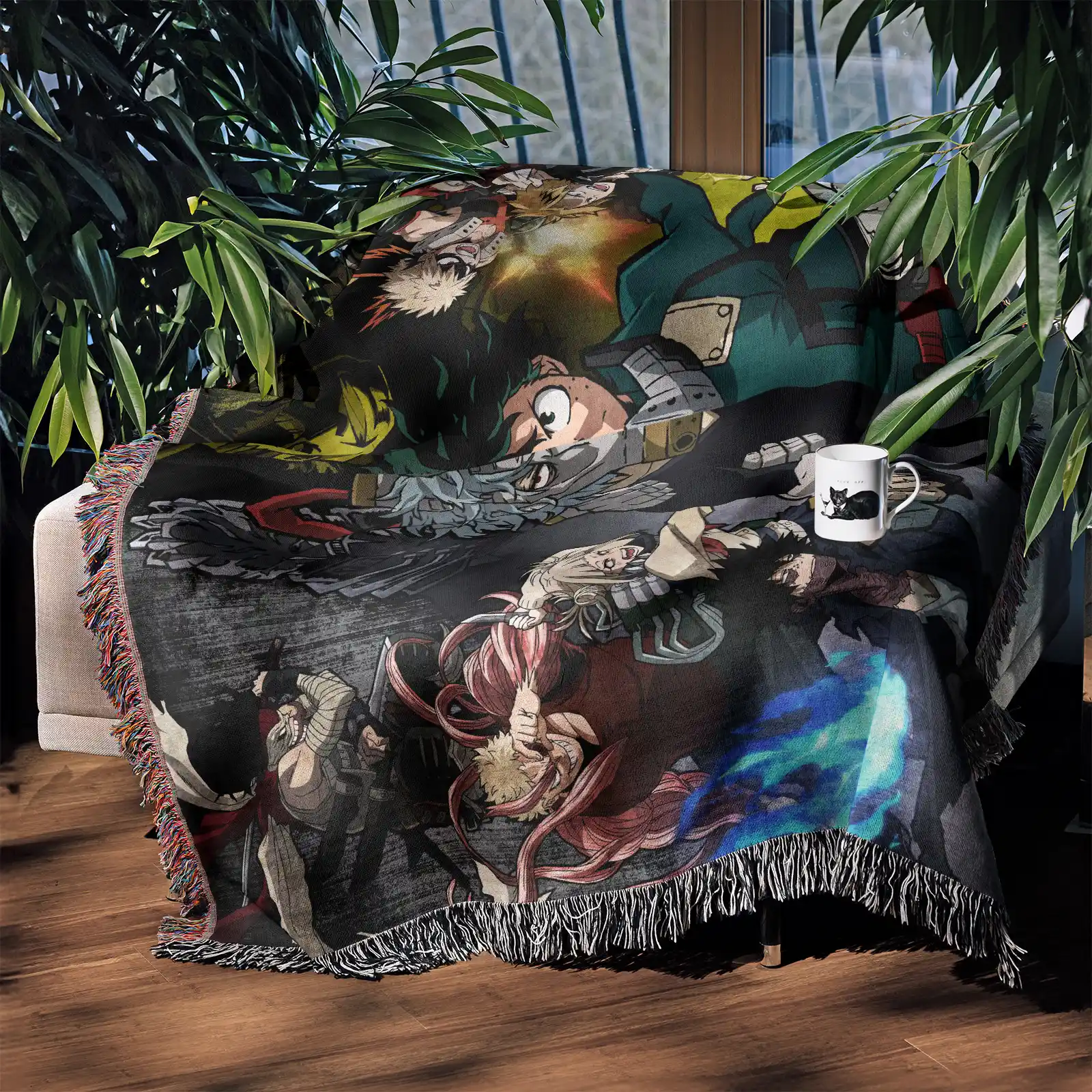 MHA Woven Tapestry Throw Blanket – Cozy Wall Rug, Room & Home Decor, Anime-Inspired Accent