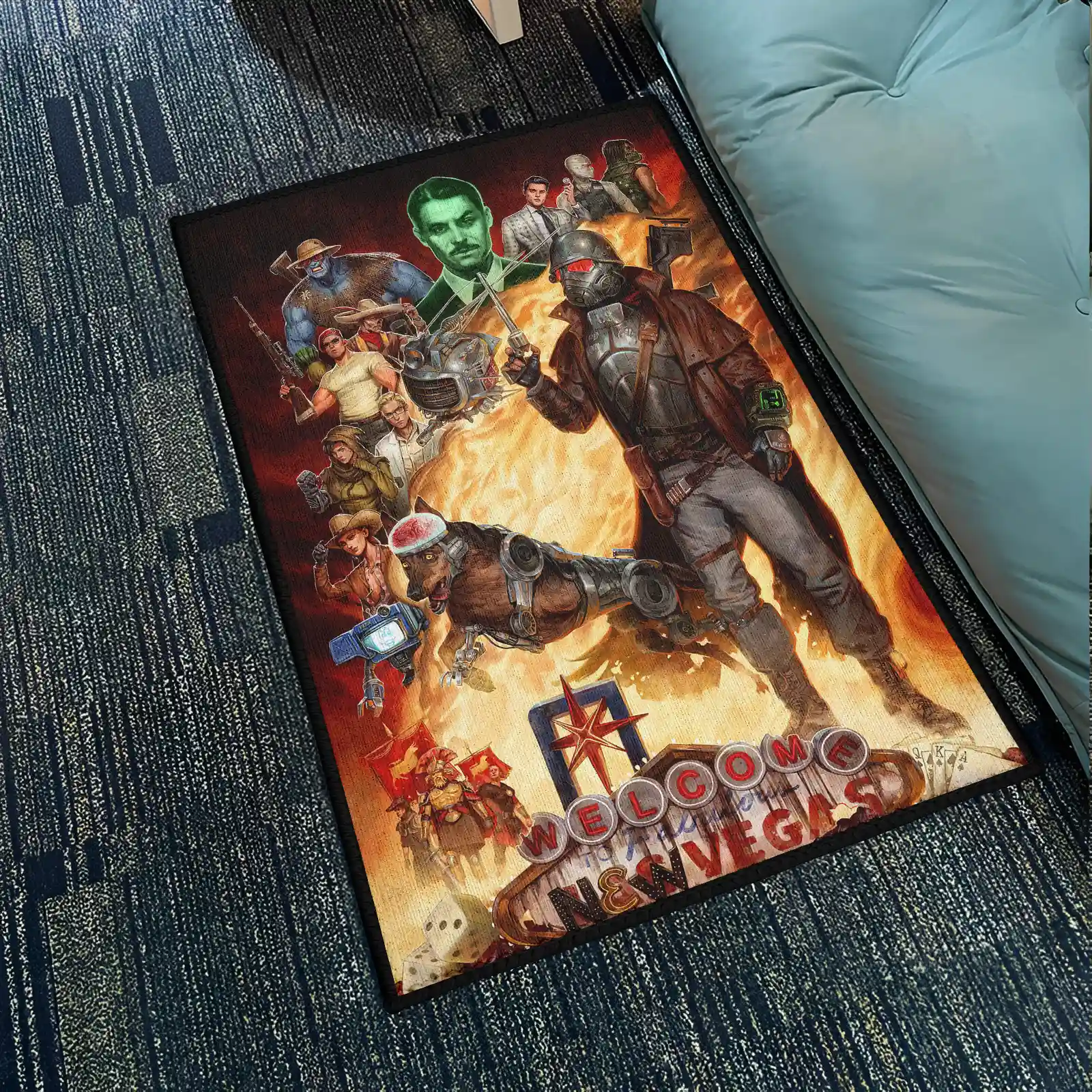 The New Vegas Rug captures the retro-futuristic vibe of Fallout: New Vegas, perfect for otaku rooms or retro RPG fans.