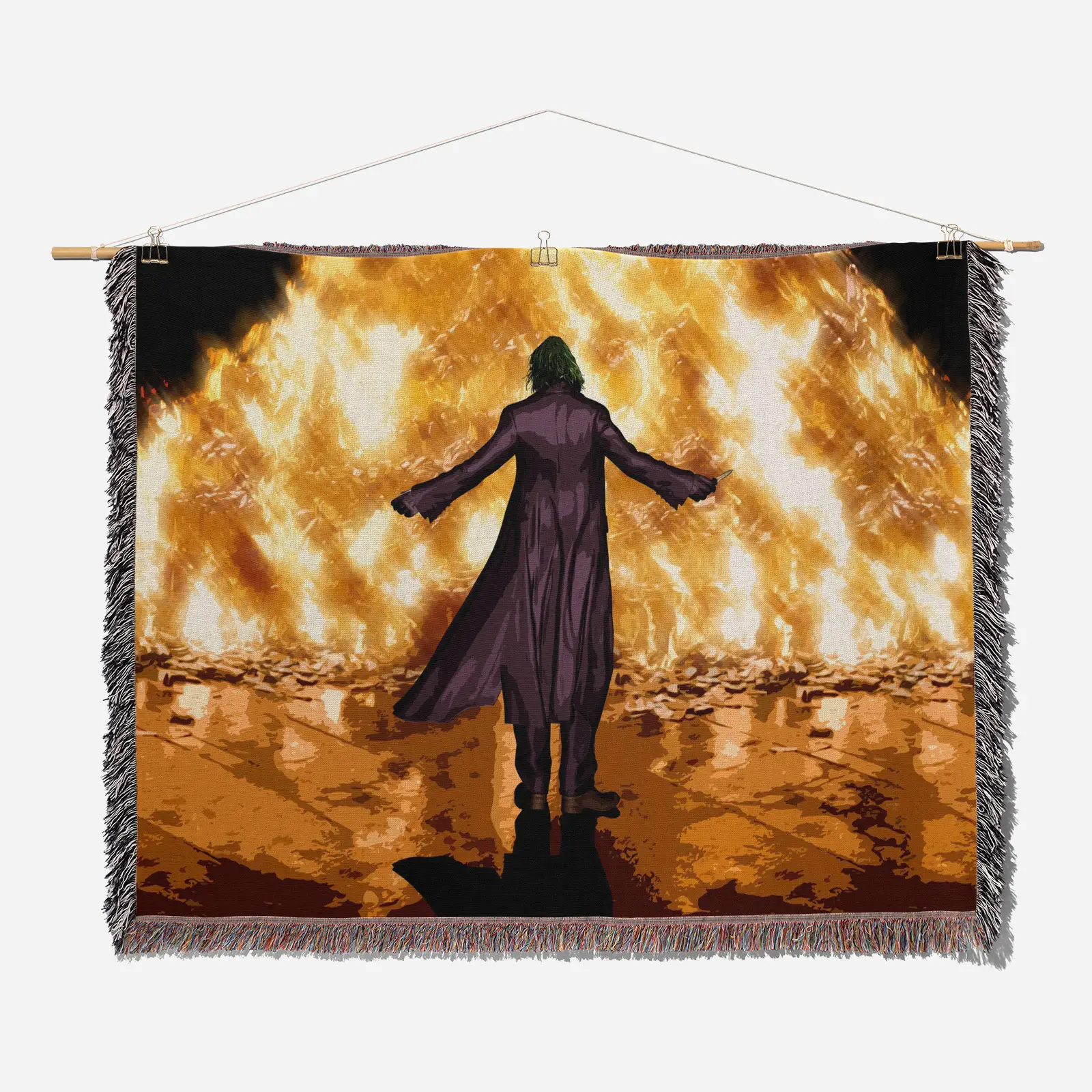 Celebrate the joker with this Joker Woven Tapestry Throw Blanket – Retro Wall Rug, Cozy Room Decor, Perfect Gift. Made from 100% cotton yarn with detailed woven patterns, perfect as wall tapestry, throw blanket, or room accent.