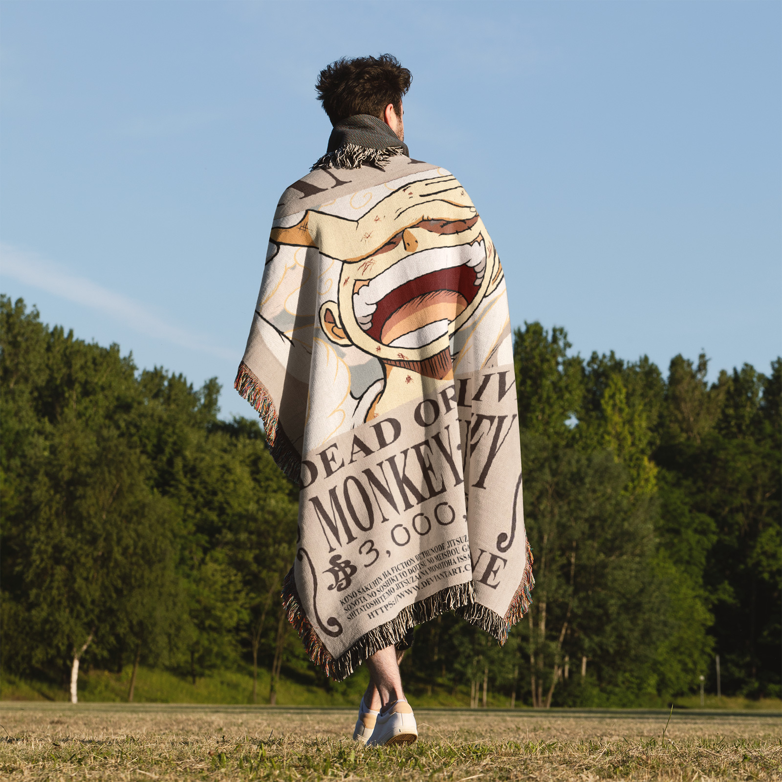 OP Luffy Wanted Poster Woven Tapestry Throw Blanket – Bold Wall Art, Room & Home Decor, Cozy Throw