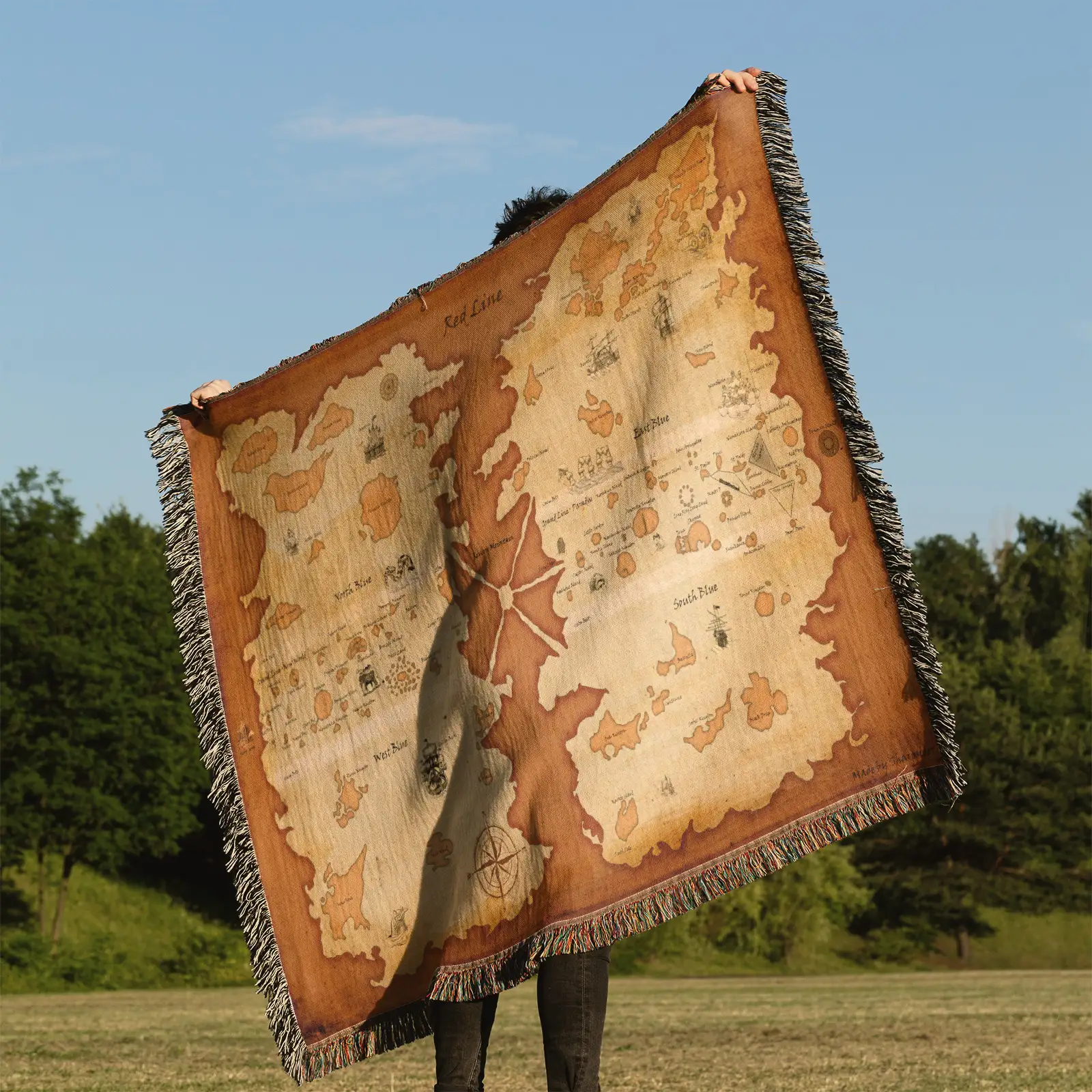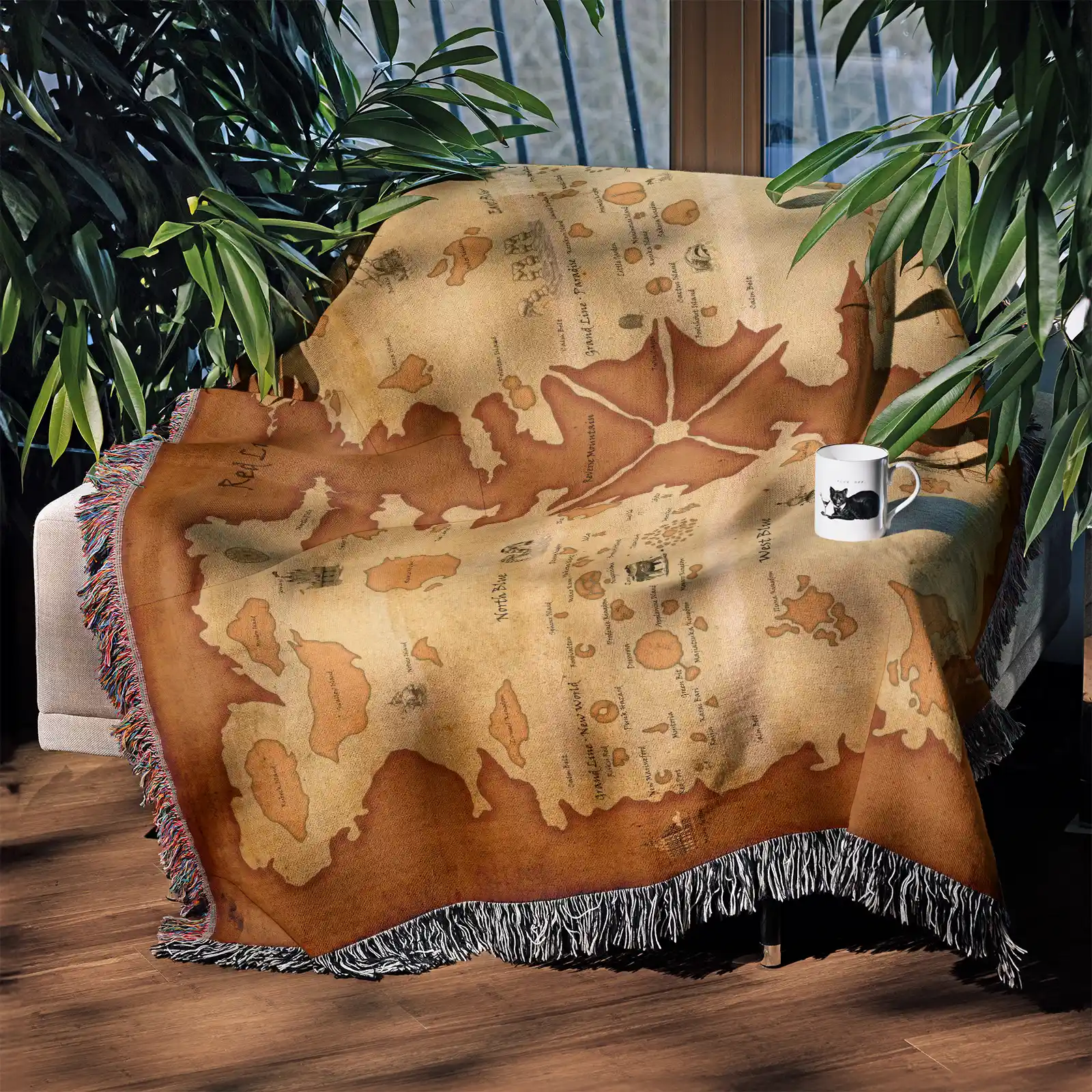 Nautical and collectible, the One Piece Red Line Map Woven Tapestry Throw Blanket is ideal as wall art, room decor, or home accent for anime fans.