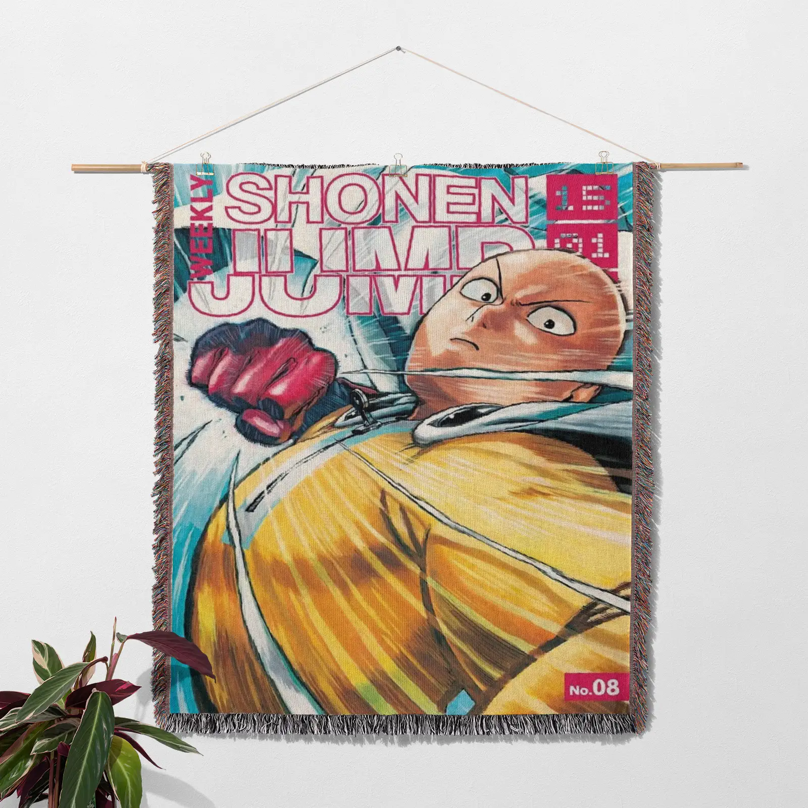One Punch Manga Cover Anime Woven Tapestry Throw Blanket – Action-Packed Wall Art, Room & Home Decor