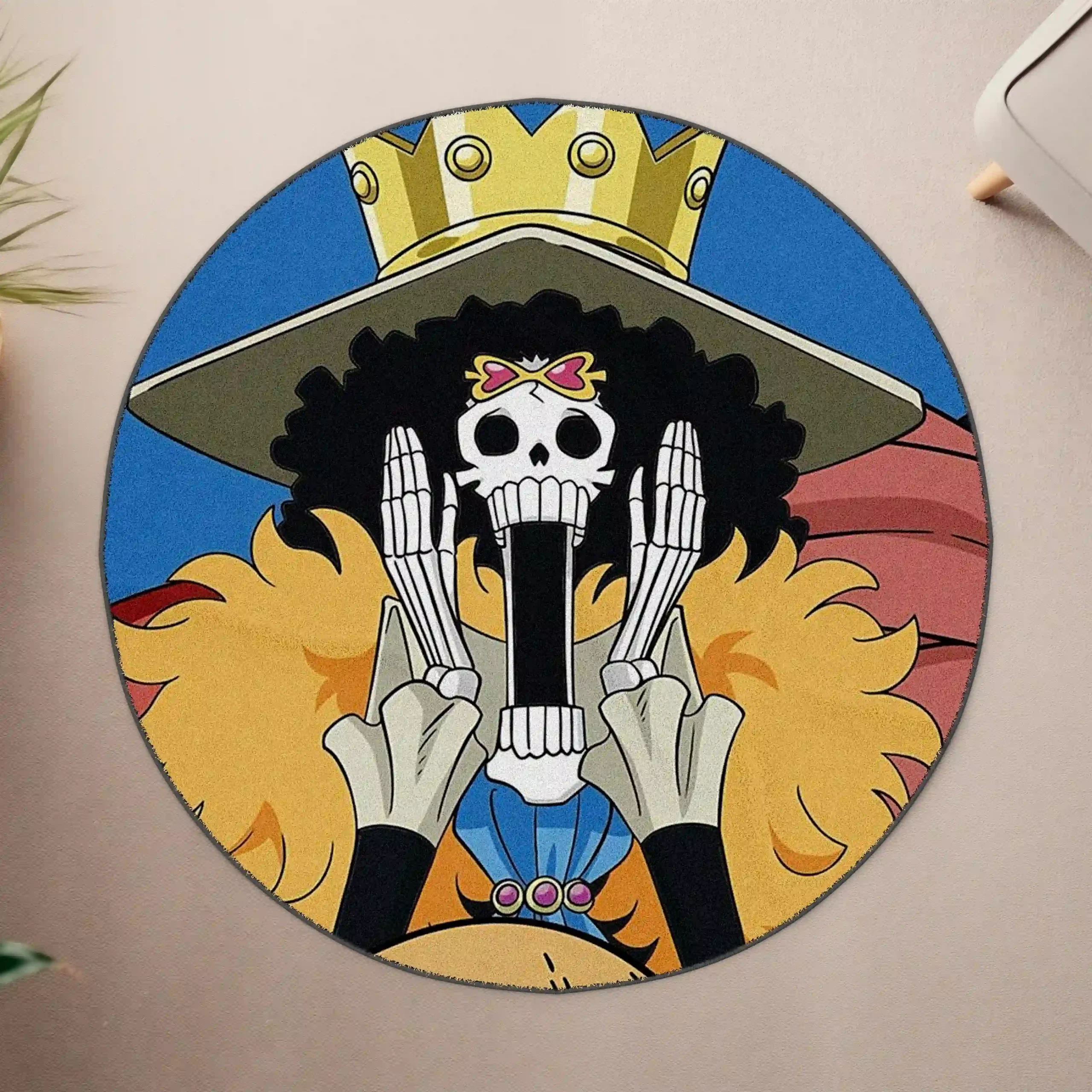 Bring the soulful vibes of the musician skeleton with the OP Brook Round Rug. Inspired by the beloved One Piece character Brook, this stylish round rug is perfect for gaming setups, bedrooms, or any anime-themed decor. Crafted with soft plush Raschel velvet and a non-slip backing, it offers both comfort and lasting durability.