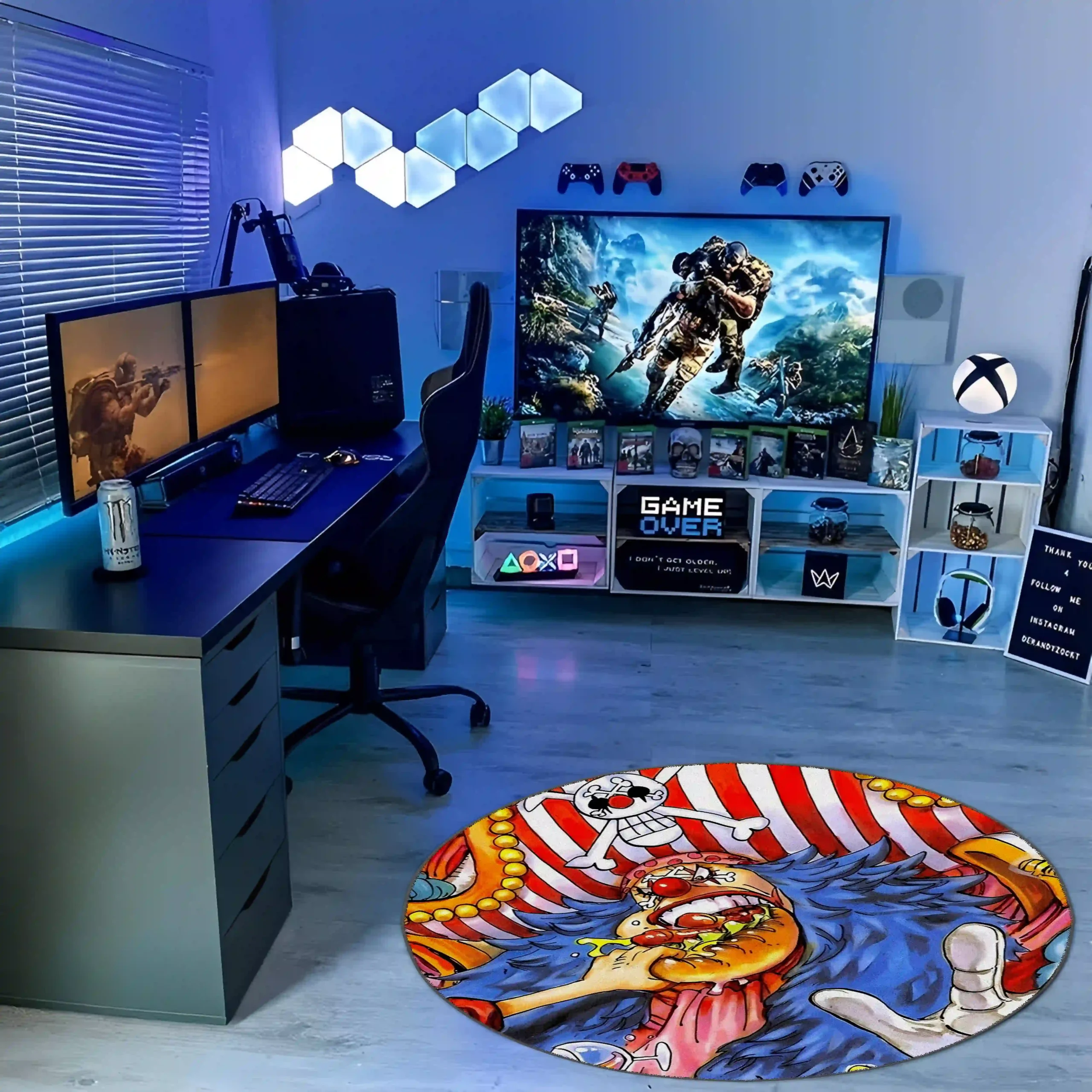 Bring the fun pirate vibe with the OP Buggy the Clown Round Rug. Perfect for boys’ rooms or pirate-themed merch collections, this round rug features playful artwork on soft Raschel velvet with non-slip backing for comfort and safety.