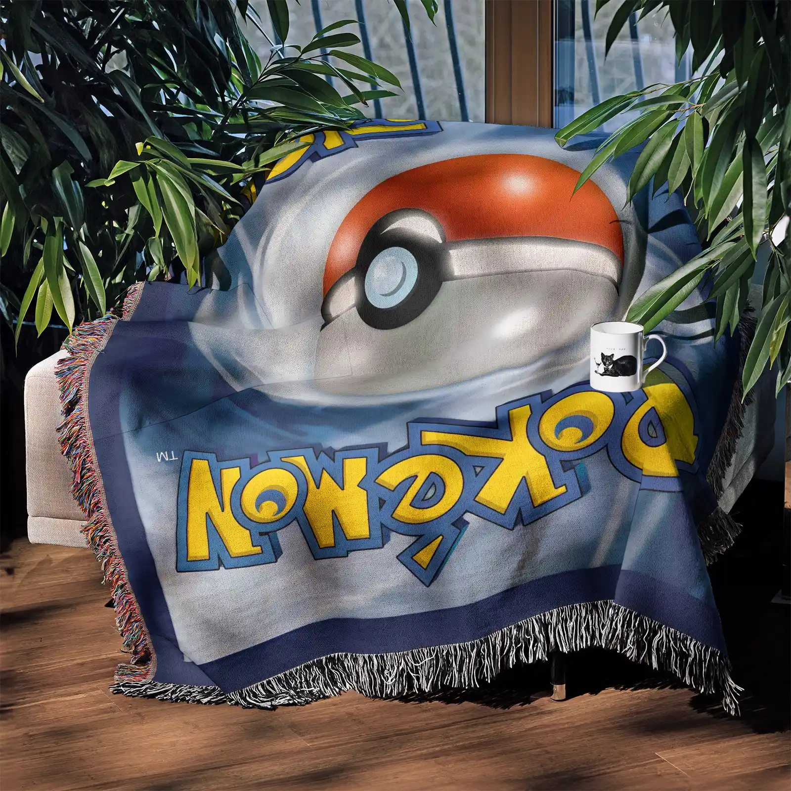 Unique and collectible, the Pokemon Card Back Woven Tapestry Throw Blanket is perfect as wall art, room & home decor, or cozy throw for fans and collectors.