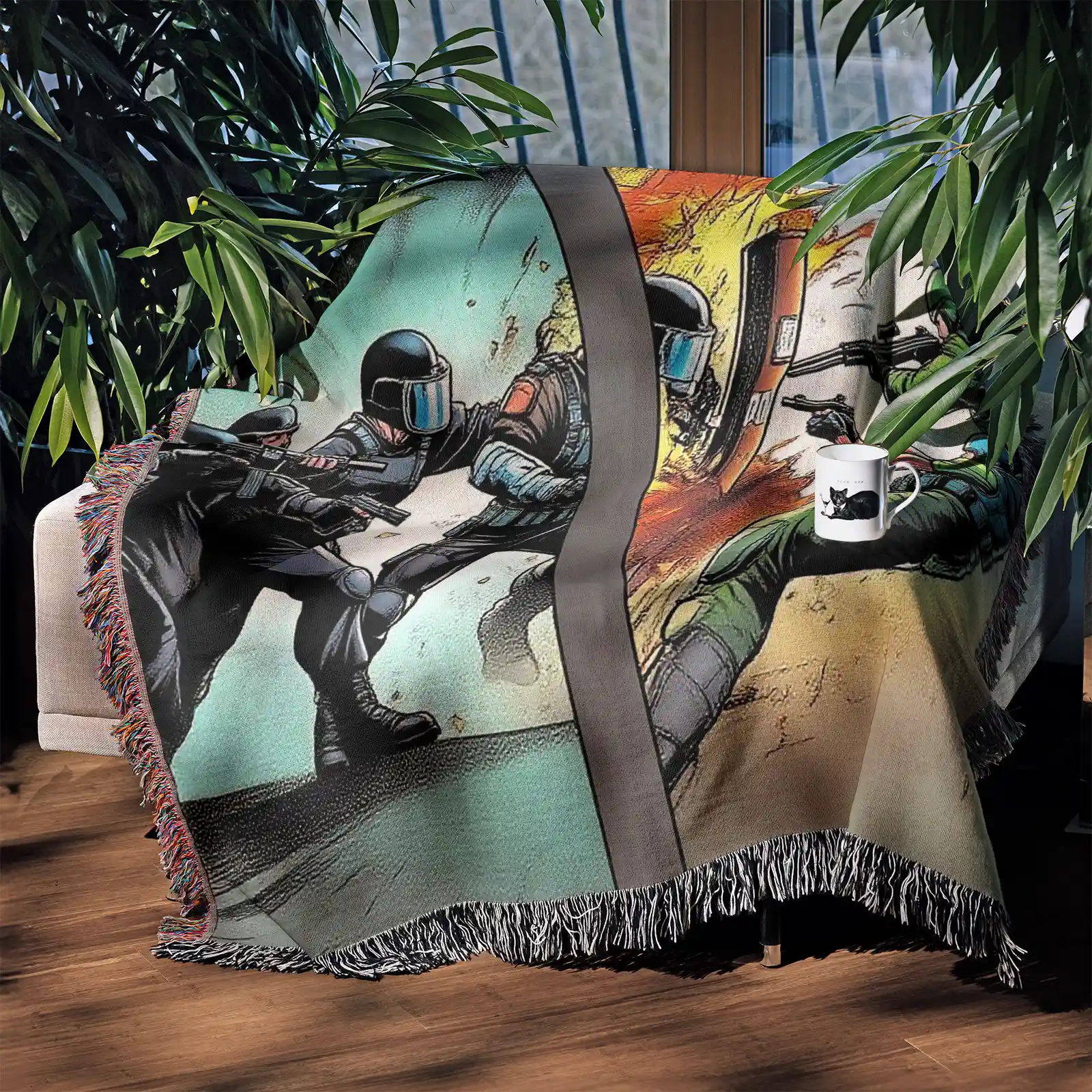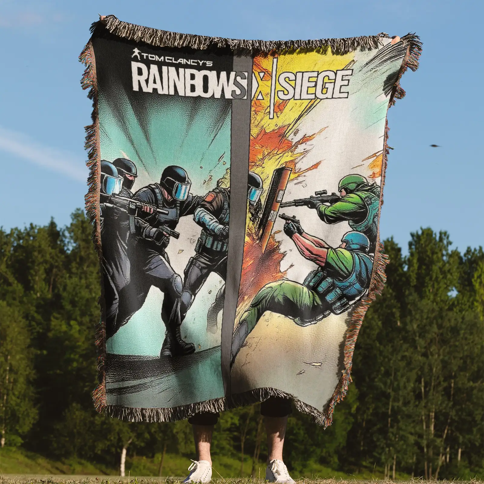 Add tactical energy to your space with this Rainbow Six Siege Woven Tapestry Throw Blanket. Crafted from 100% cotton yarn, its stylish woven patterns make it perfect as wall art, room decor, cozy home decor, or a perfect gift.