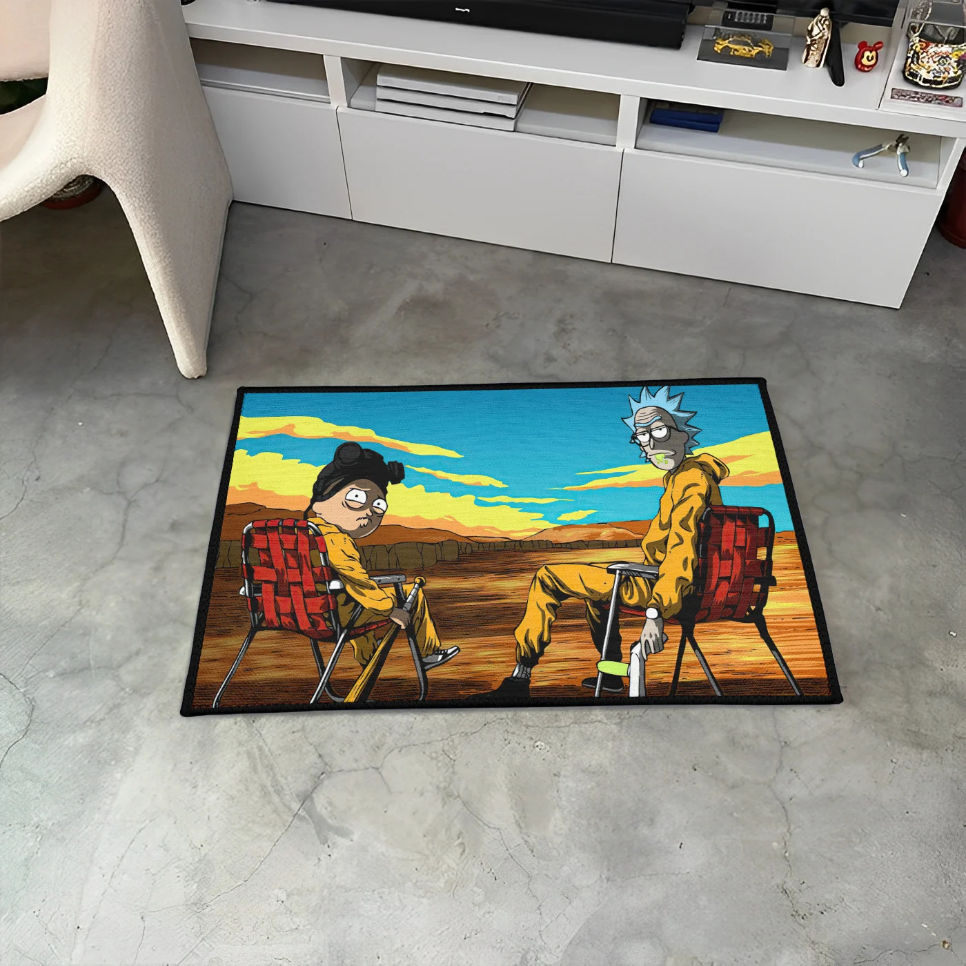 The Rick and Morty Breaking Bad Rug mashes two fan-favorite shows into one epic floor statement. A hilarious crossover piece that’s perfect for gamers, meme lovers, and fans of dark humor and animation.