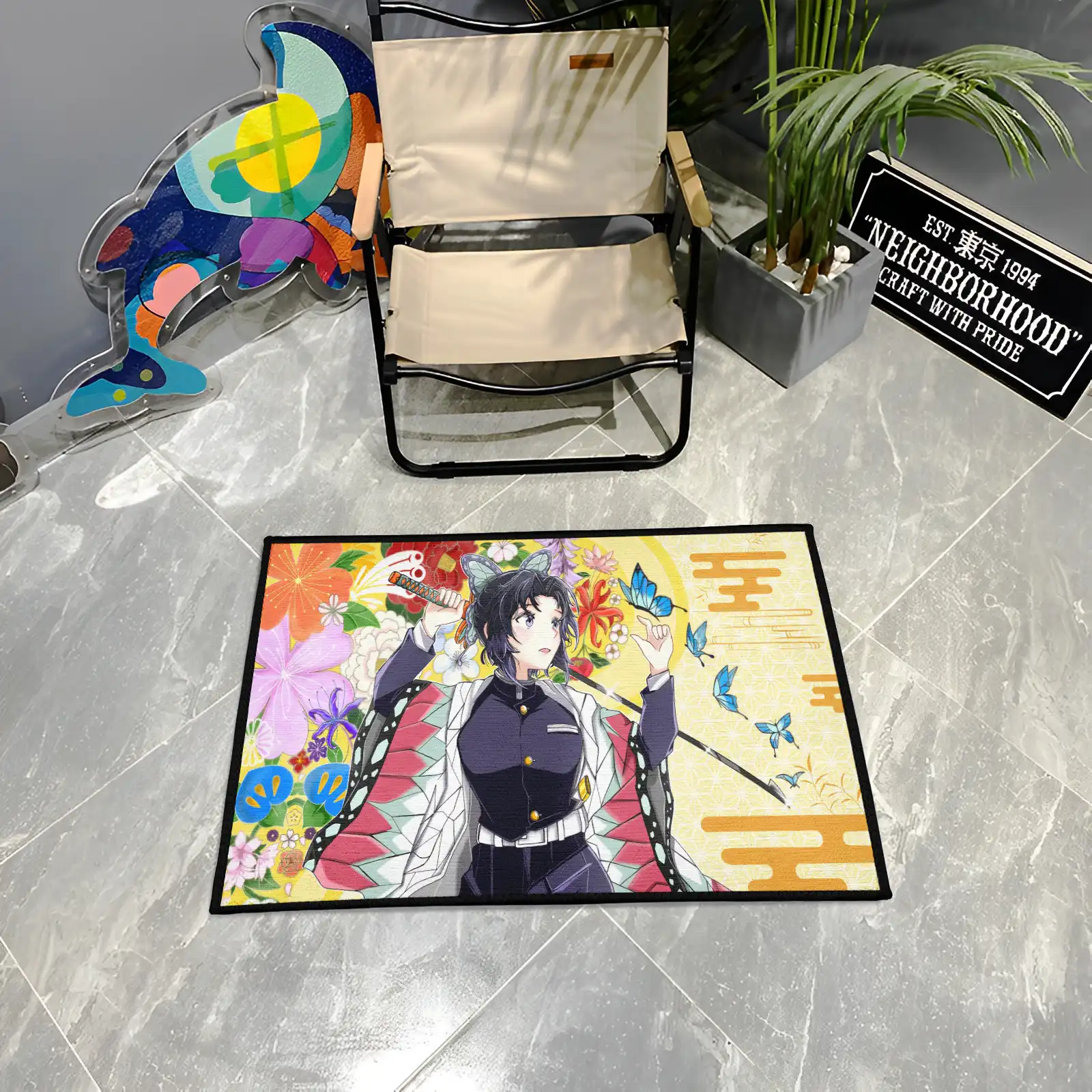 The Shinobu Rug is a stylish anime carpet featuring Shinobu Kocho from Demon Slayer, perfect for girls’ rooms or fan gifts.