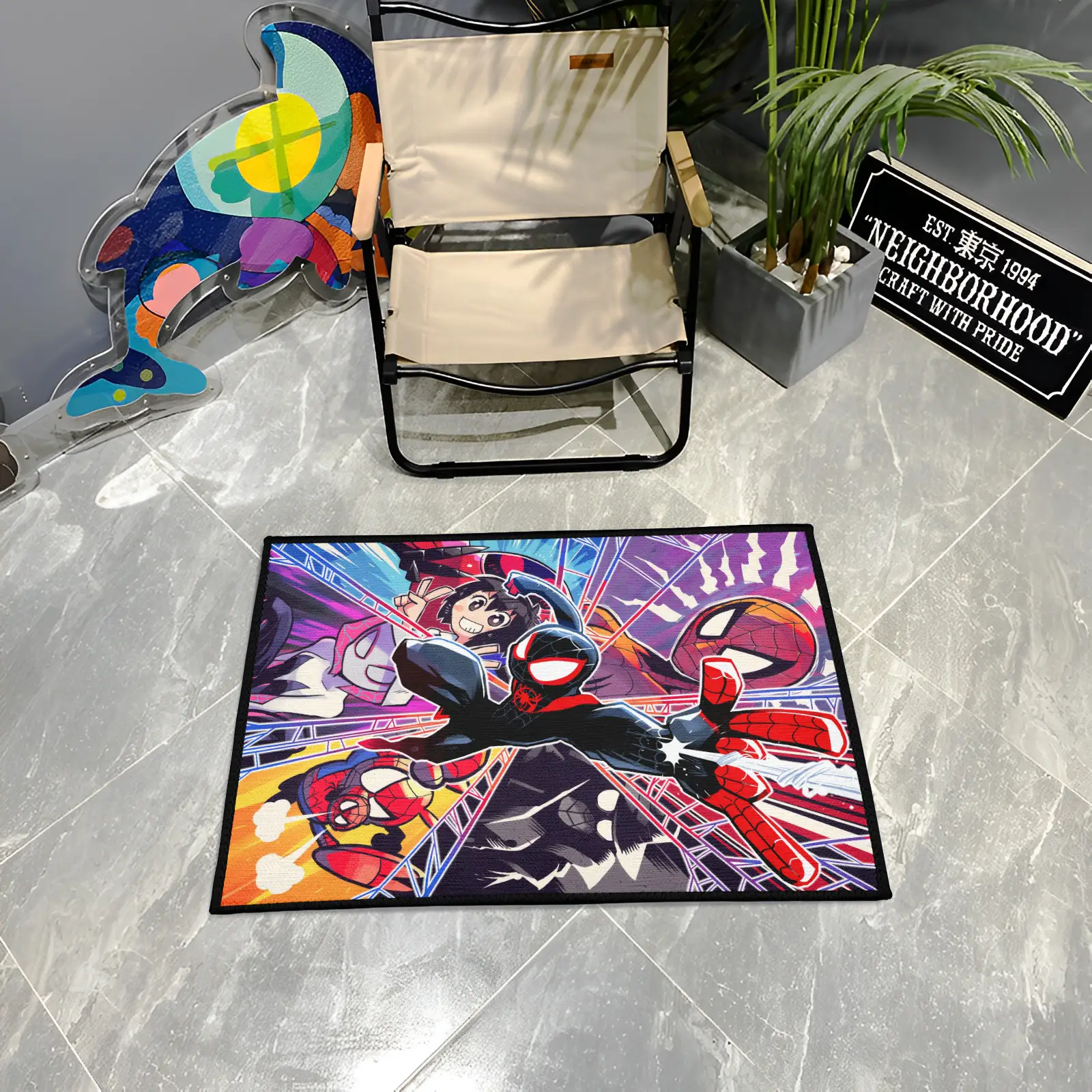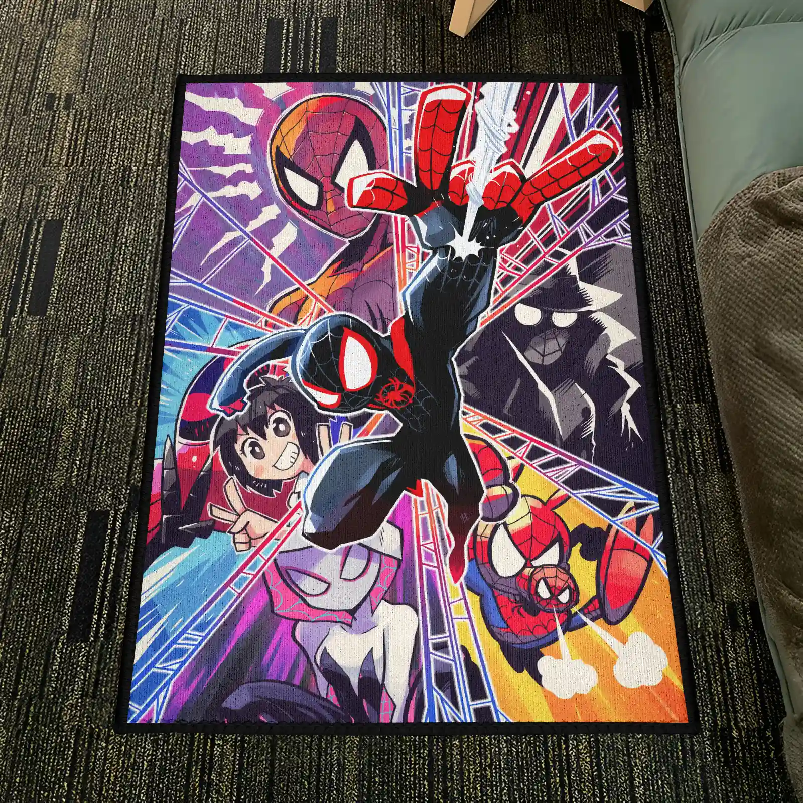 Spider Black Rug – Unique Superhero Floor Mat, Great Decor for Fans