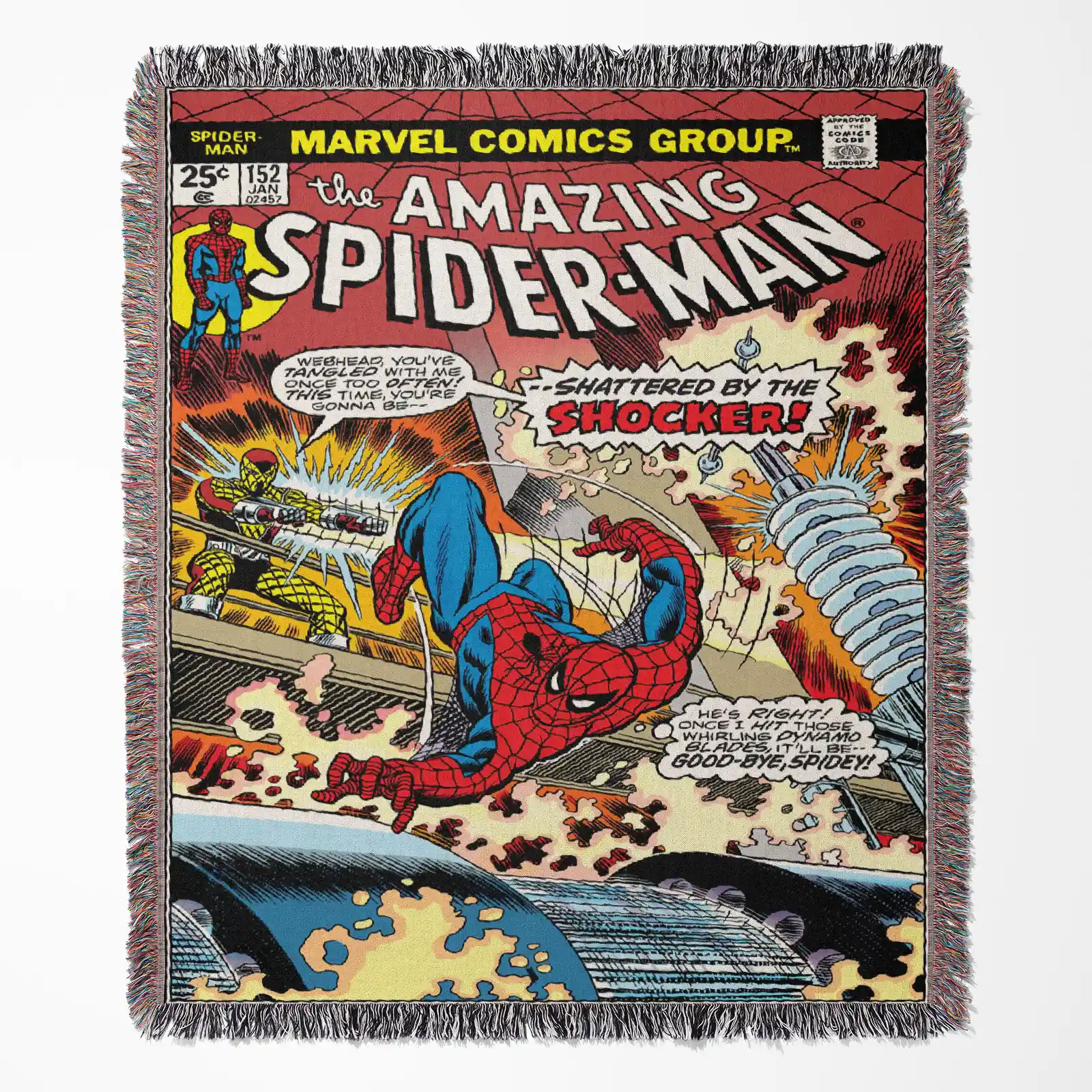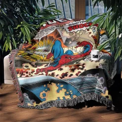 Celebrate Spider-Man with this Spider Man Comic Cover Woven Tapestry Throw Blanket – Retro Wall Rug, Unique Room Decor, Perfect Gift. Crafted from 100% cotton yarn with detailed woven patterns, perfect as wall tapestry, throw blanket, or decorative accent for fans.