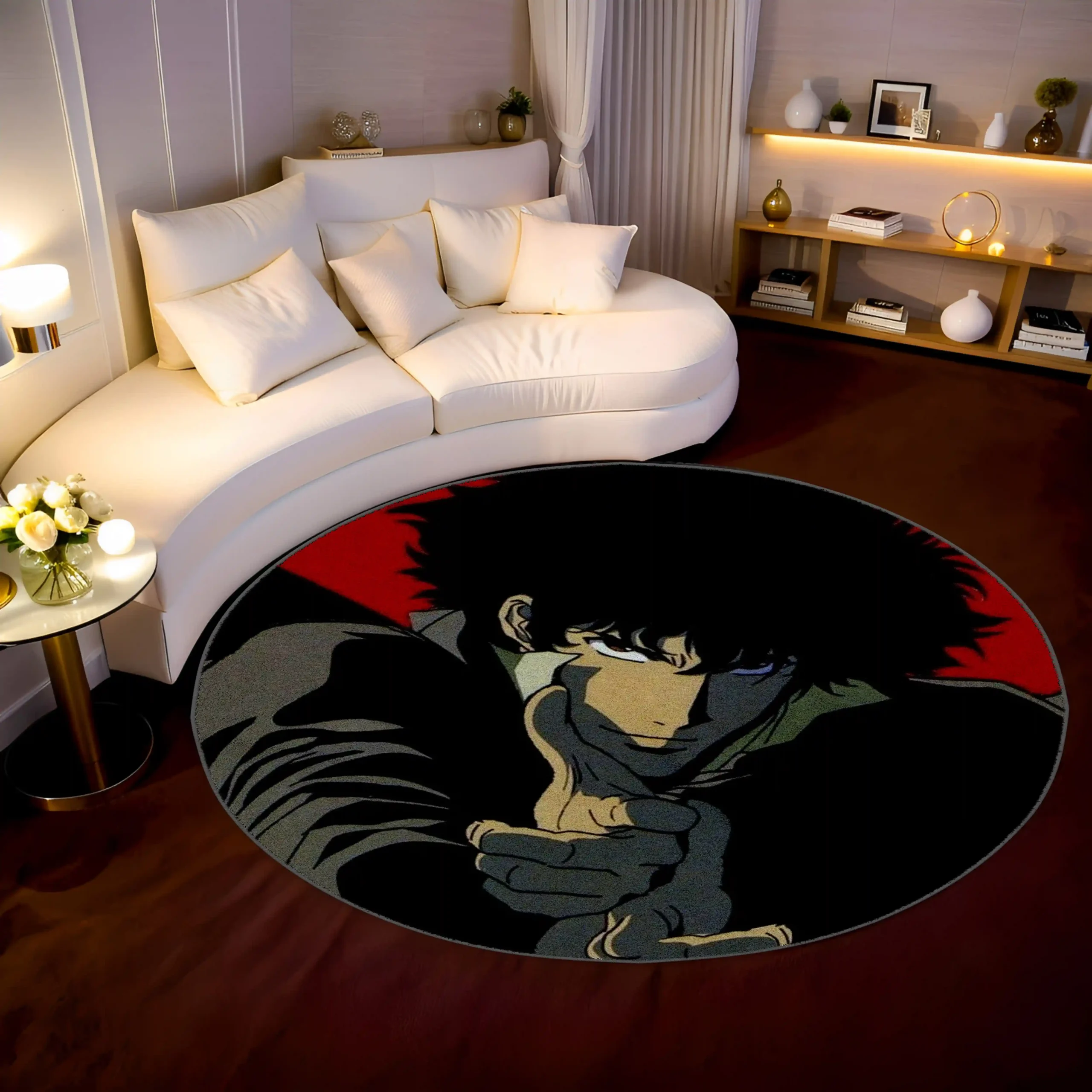 Spike Spiegel Round Rug – Cool Rug for Gaming Setup or Retro Room Display