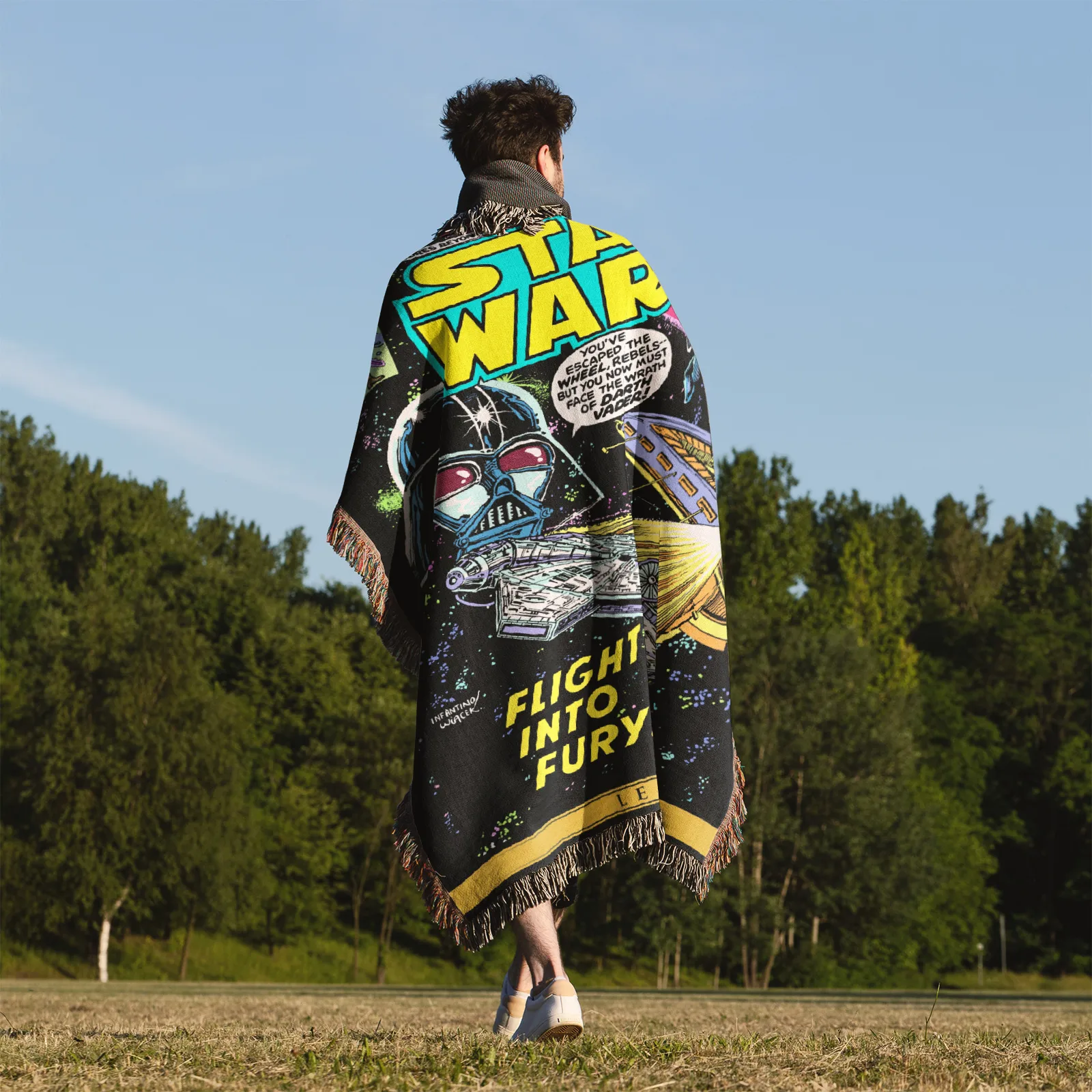 Show off the Dark Side with this Star Wars Darth Vader Woven Tapestry Throw Blanket – Retro Wall Rug, Cool Room Decor, Perfect Gift. Crafted from 100% cotton yarn with rich woven patterns, ideal as wall tapestry, throw, or room accent for Star Wars fans.