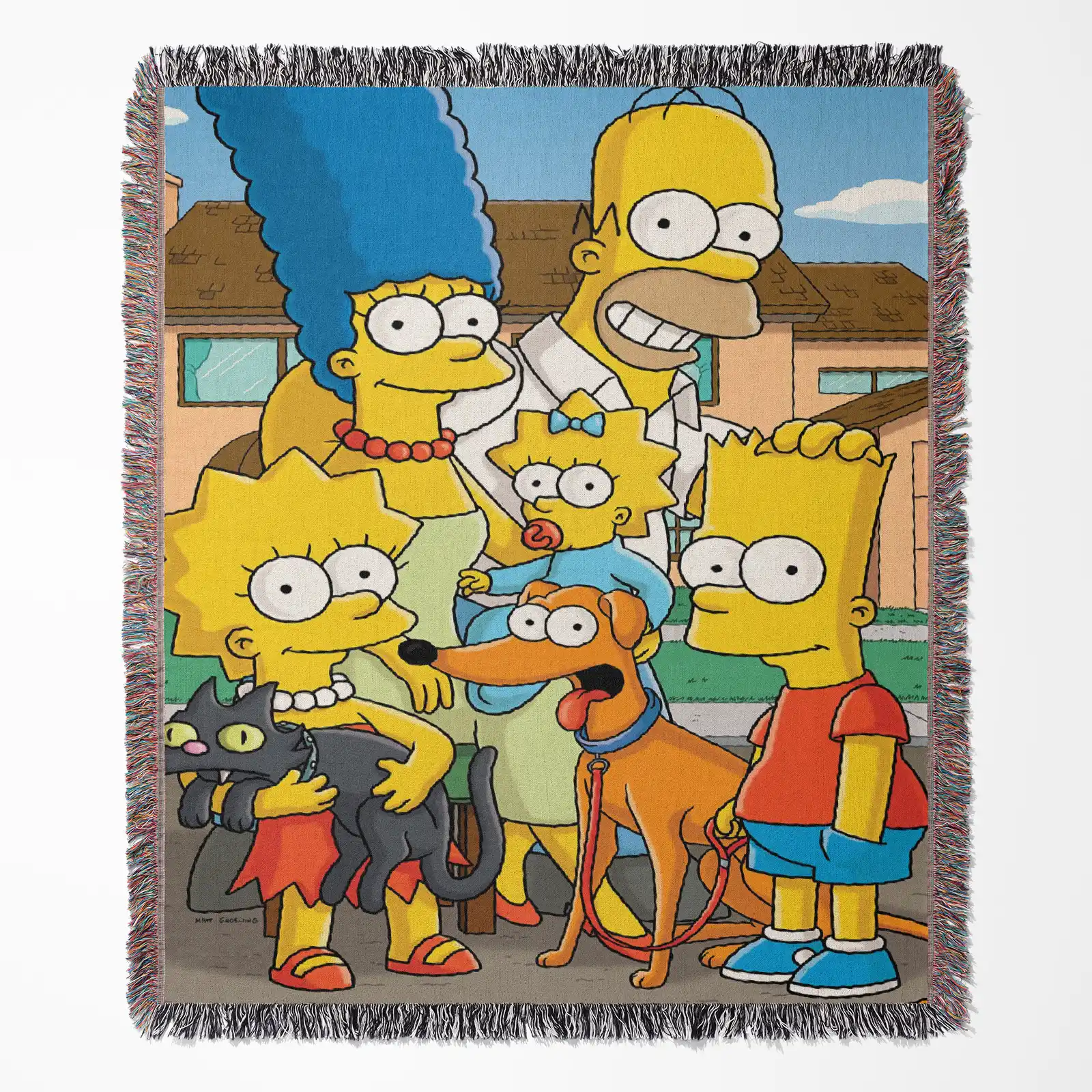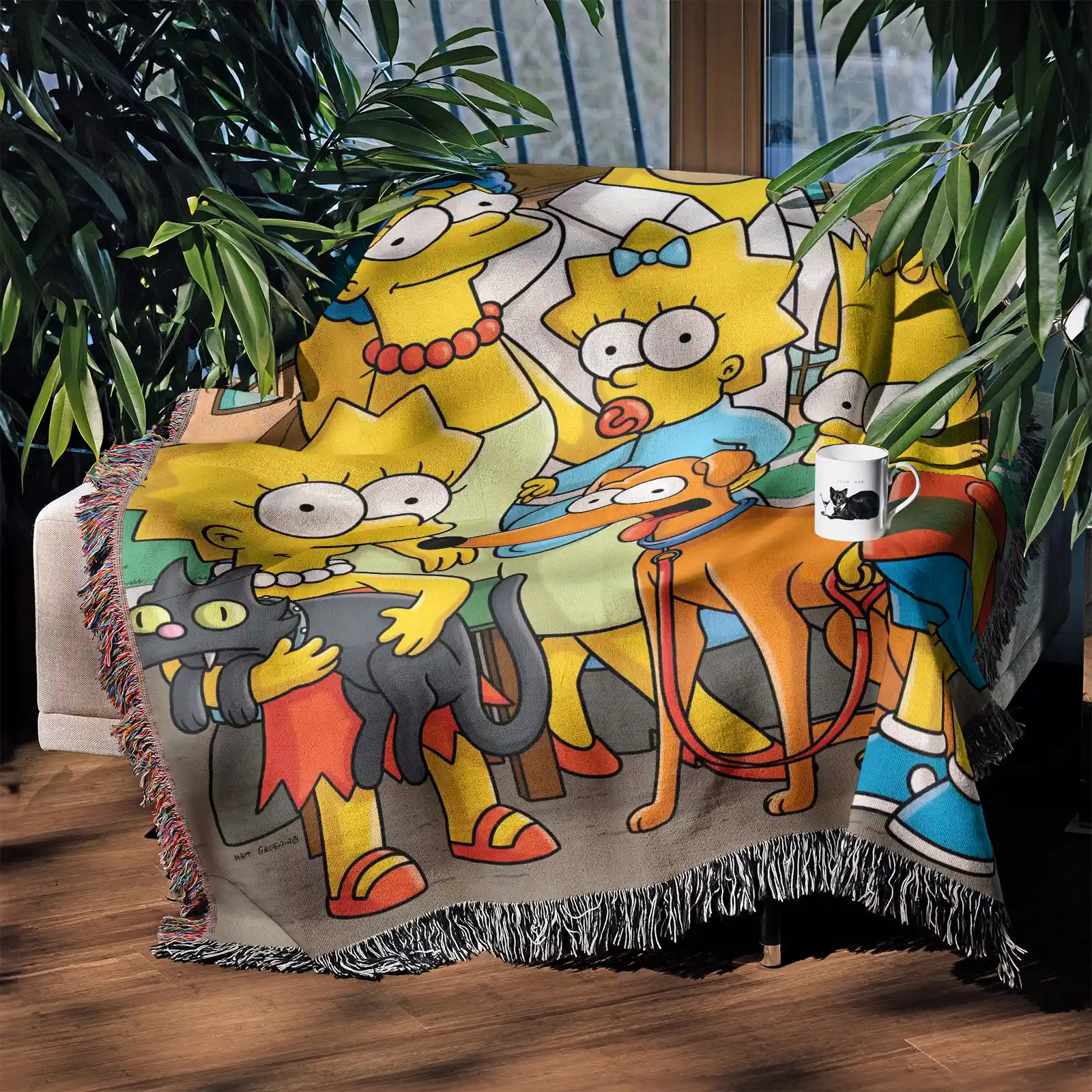 Simpson Woven Tapestry Throw Blanket – Stylish Wall Rug, Bright Home Decor, Gift for Fans