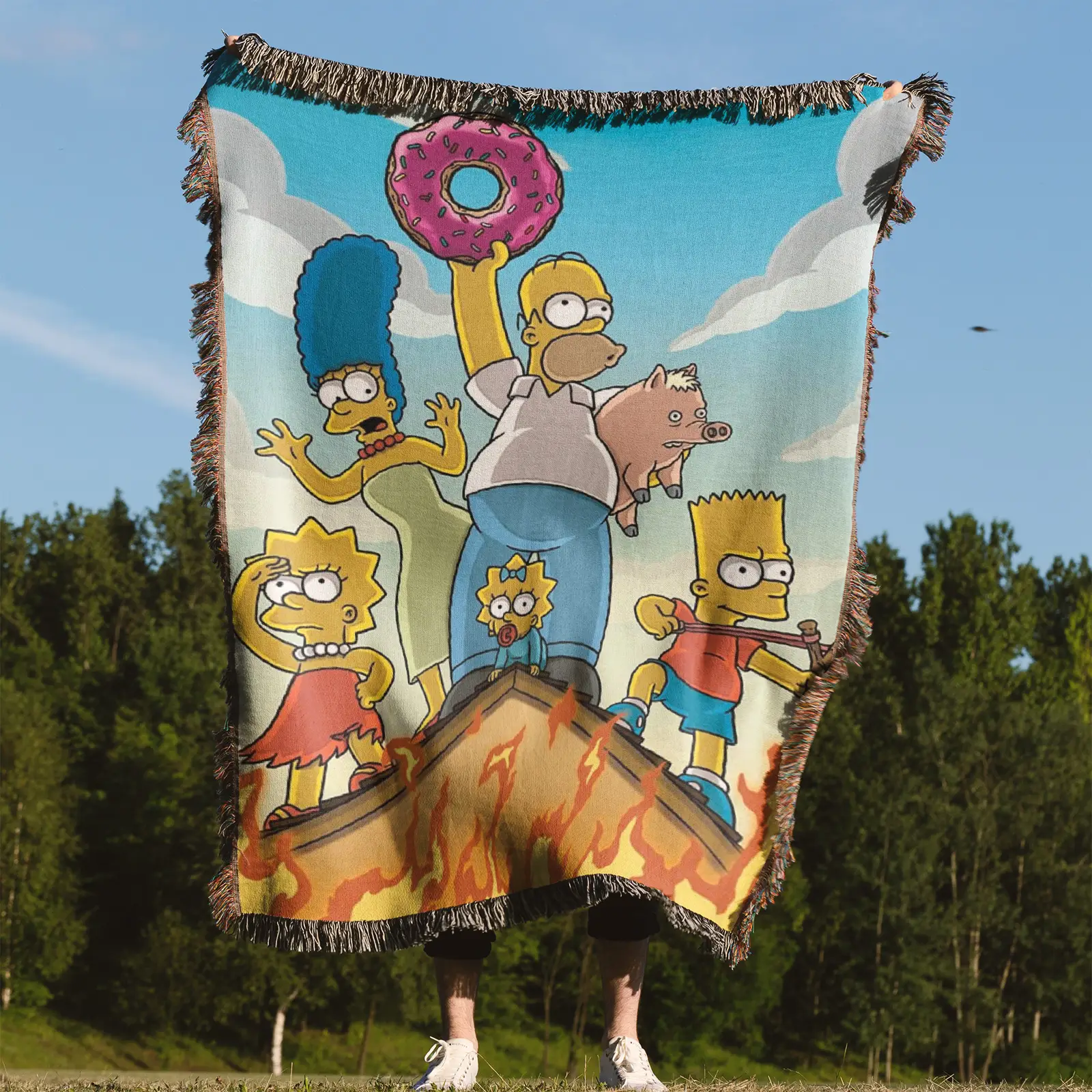Simpson woven tapestry throw blanket, featuring vintage wall art and unique room decor, ideal for collectors and fans of The Simpsons.