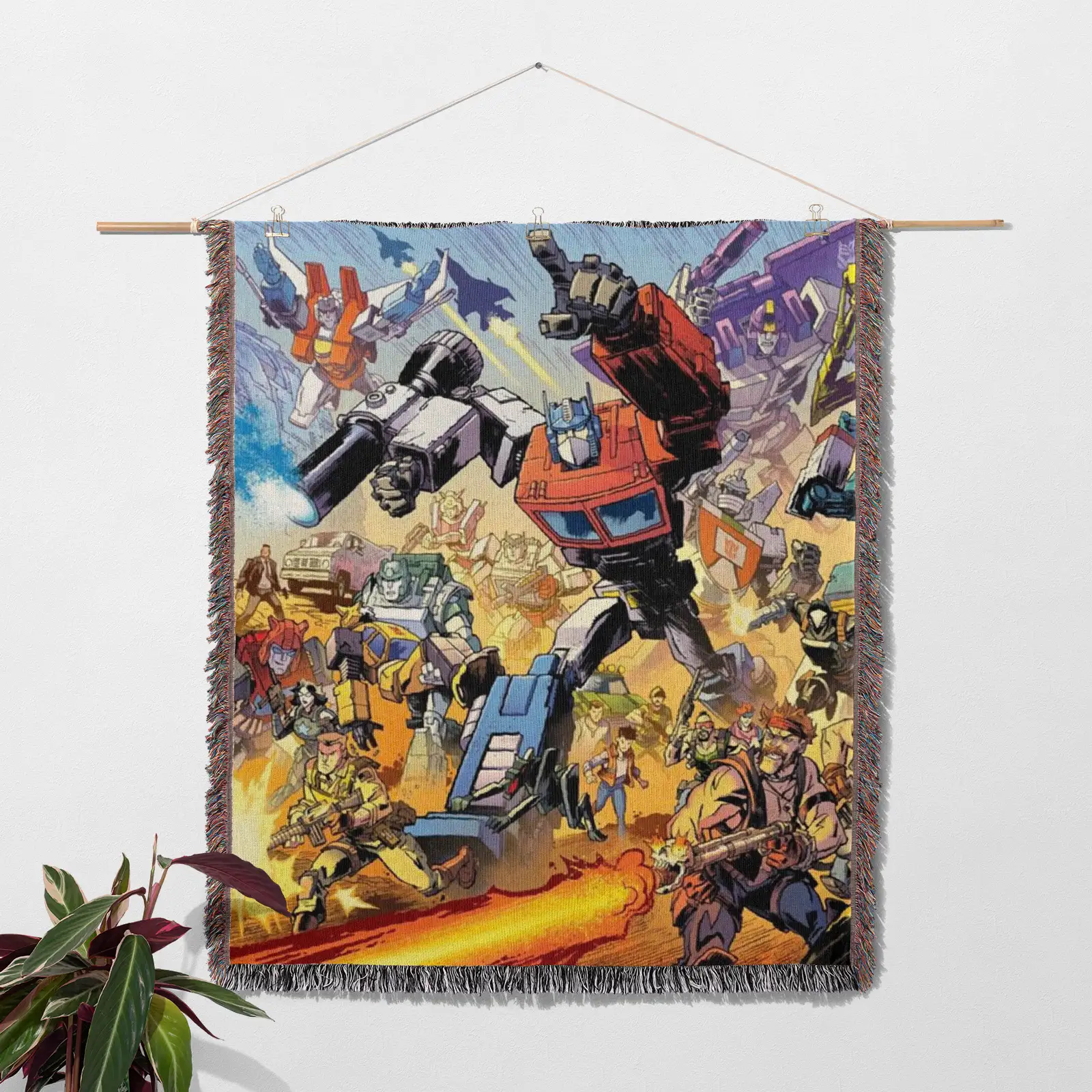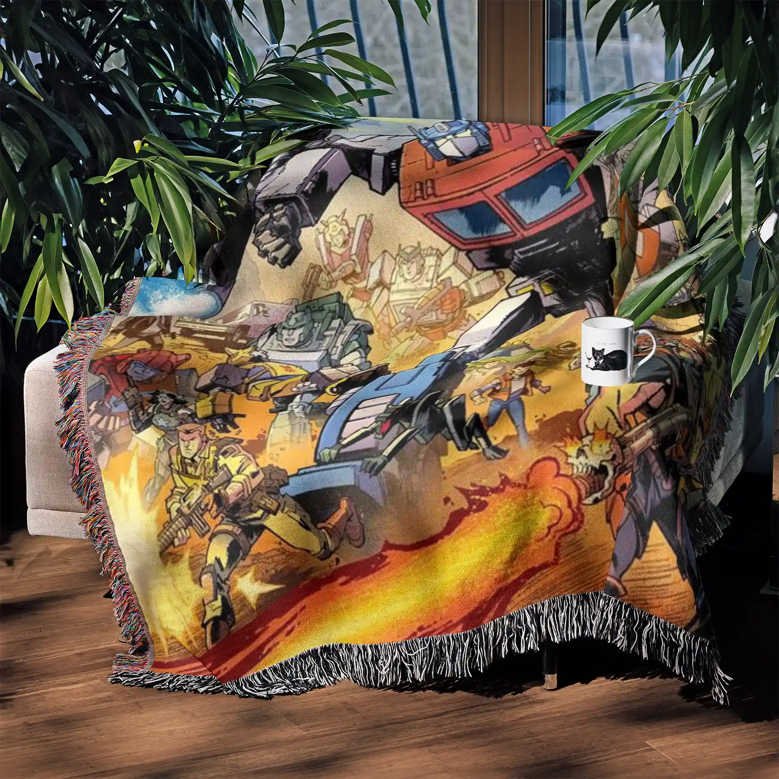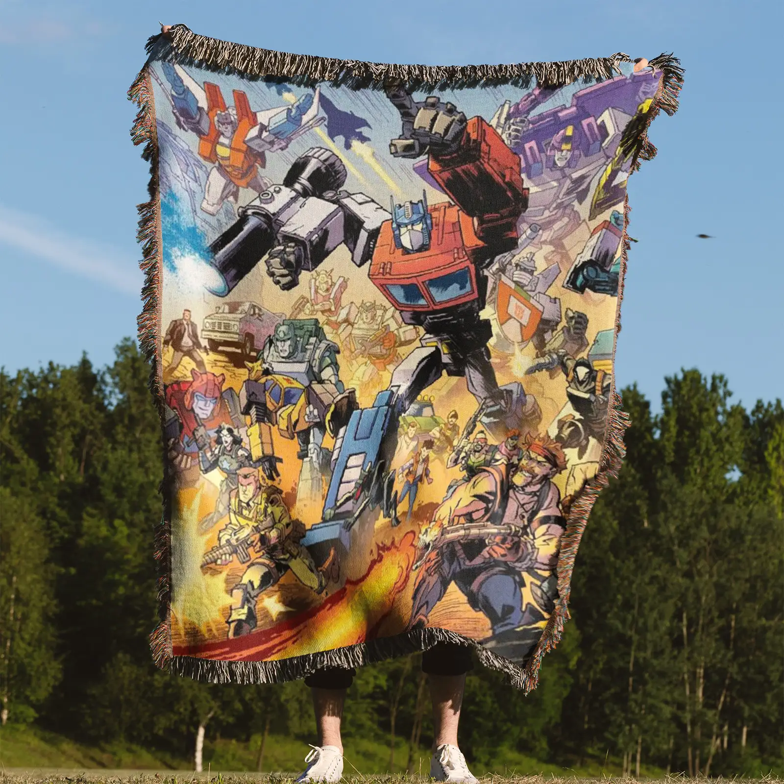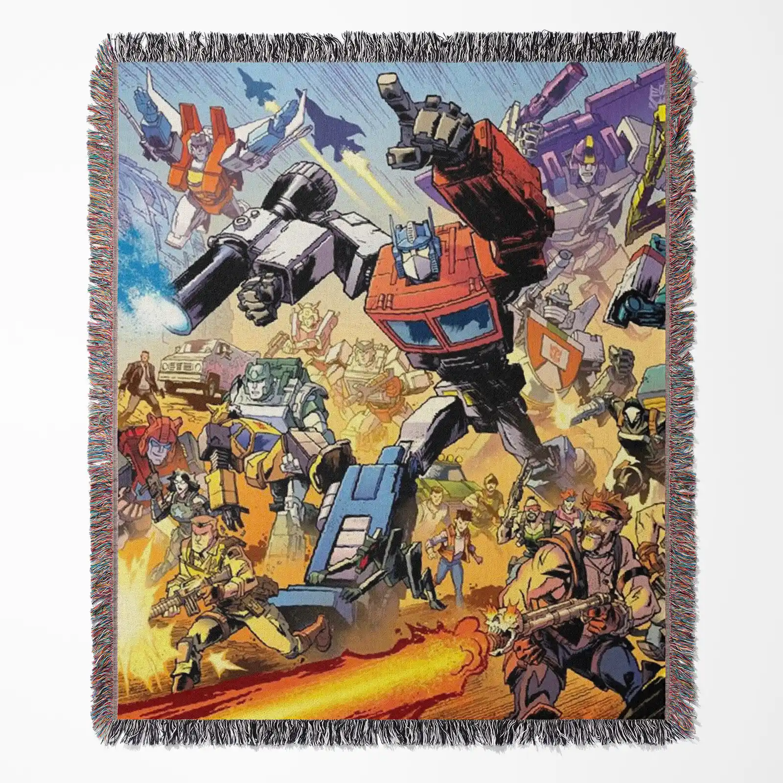 Showcase your space with this Transformers Woven Tapestry Throw Blanket – Stylish Wall Art, Unique Room Decor, Collectible Merch. Made from 100% cotton yarn with rich woven patterns, perfect as wall tapestry, bed blanket, or decorative throw.