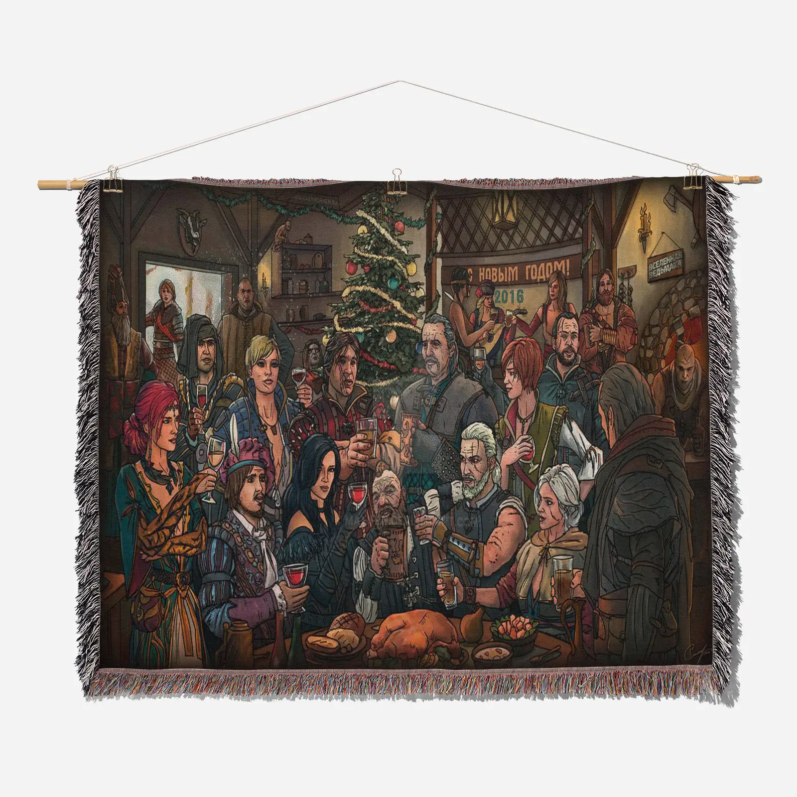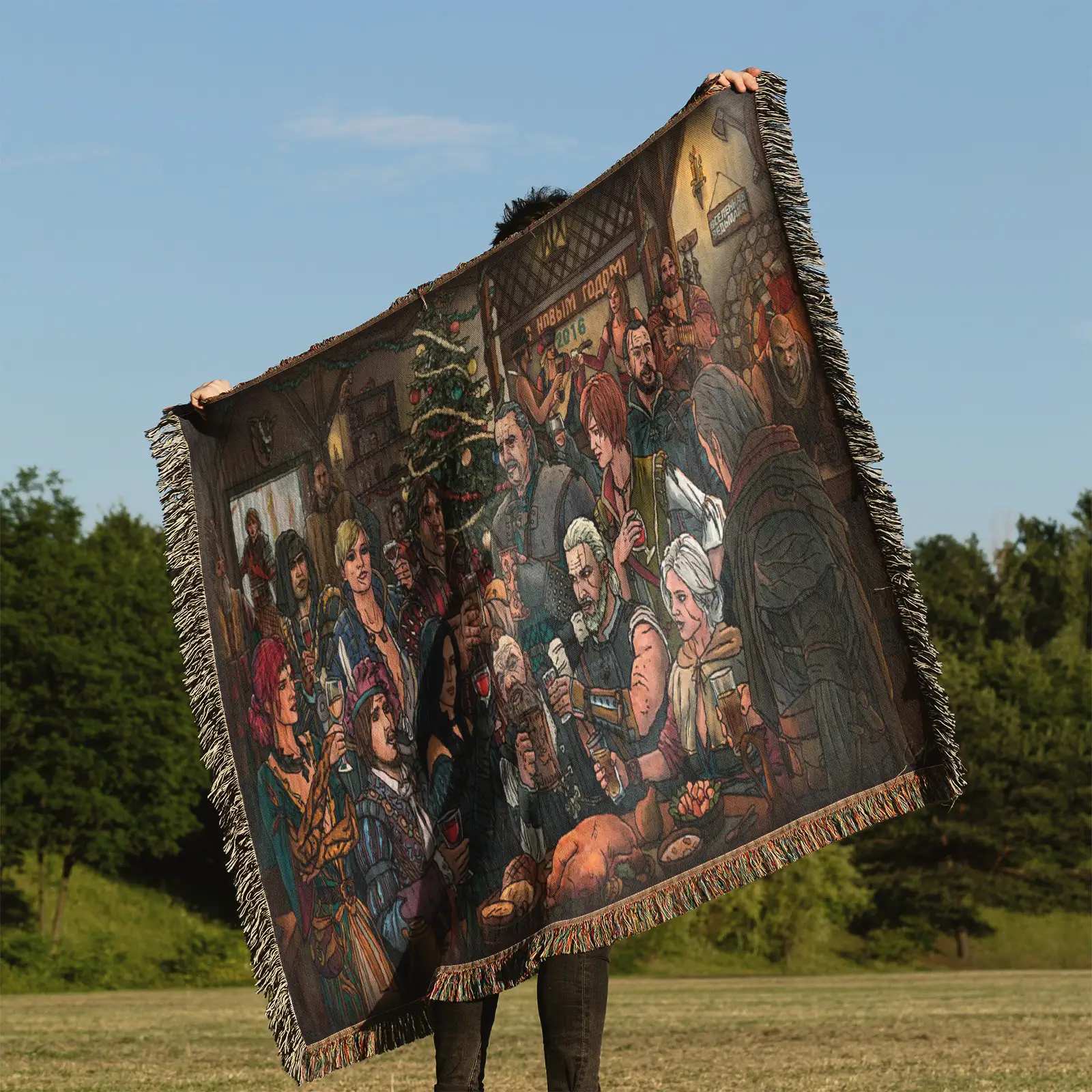 Bring epic fantasy vibes into your room with this Witcher 3 Woven Tapestry Throw Blanket. Crafted from 100% cotton yarn, its epic woven patterns make it perfect as wall rug, room decor, or collectible merch.