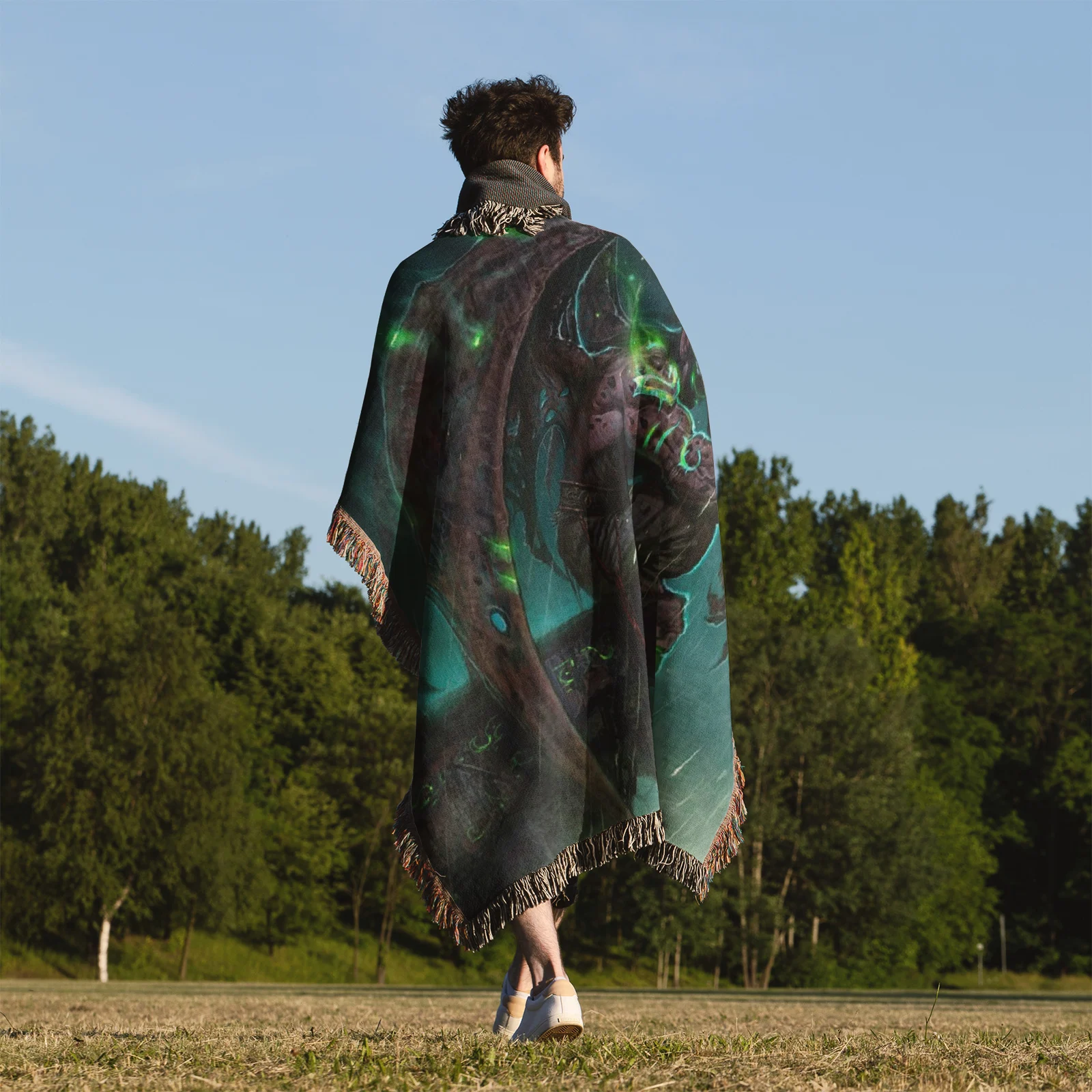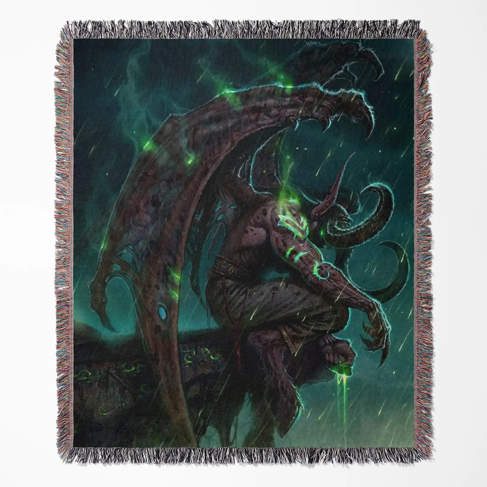 World of Warcraft Illidan woven tapestry throw blanket, featuring epic wall rug design, room decor, and cozy home decor, perfect as a collectible for World of Warcraft fans.