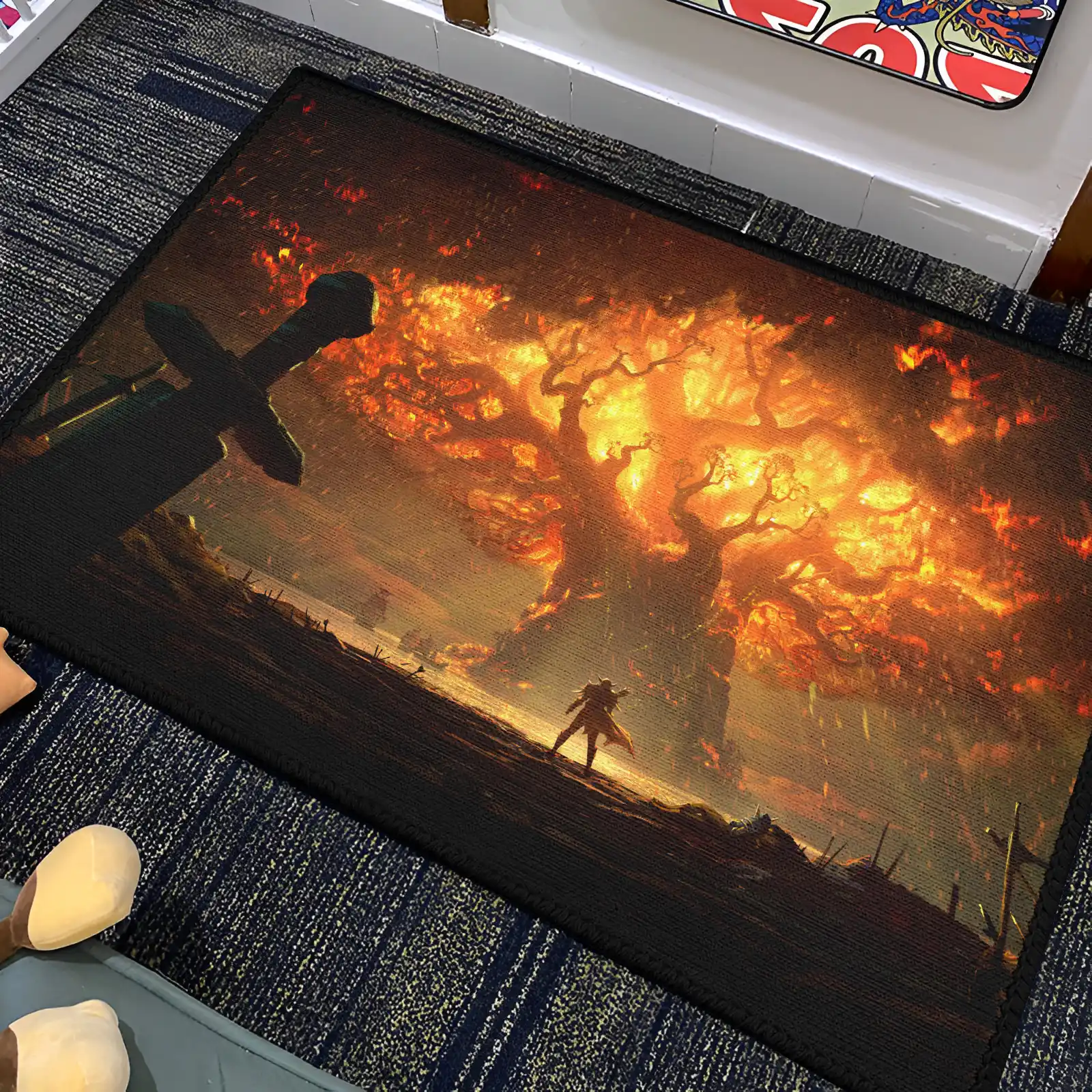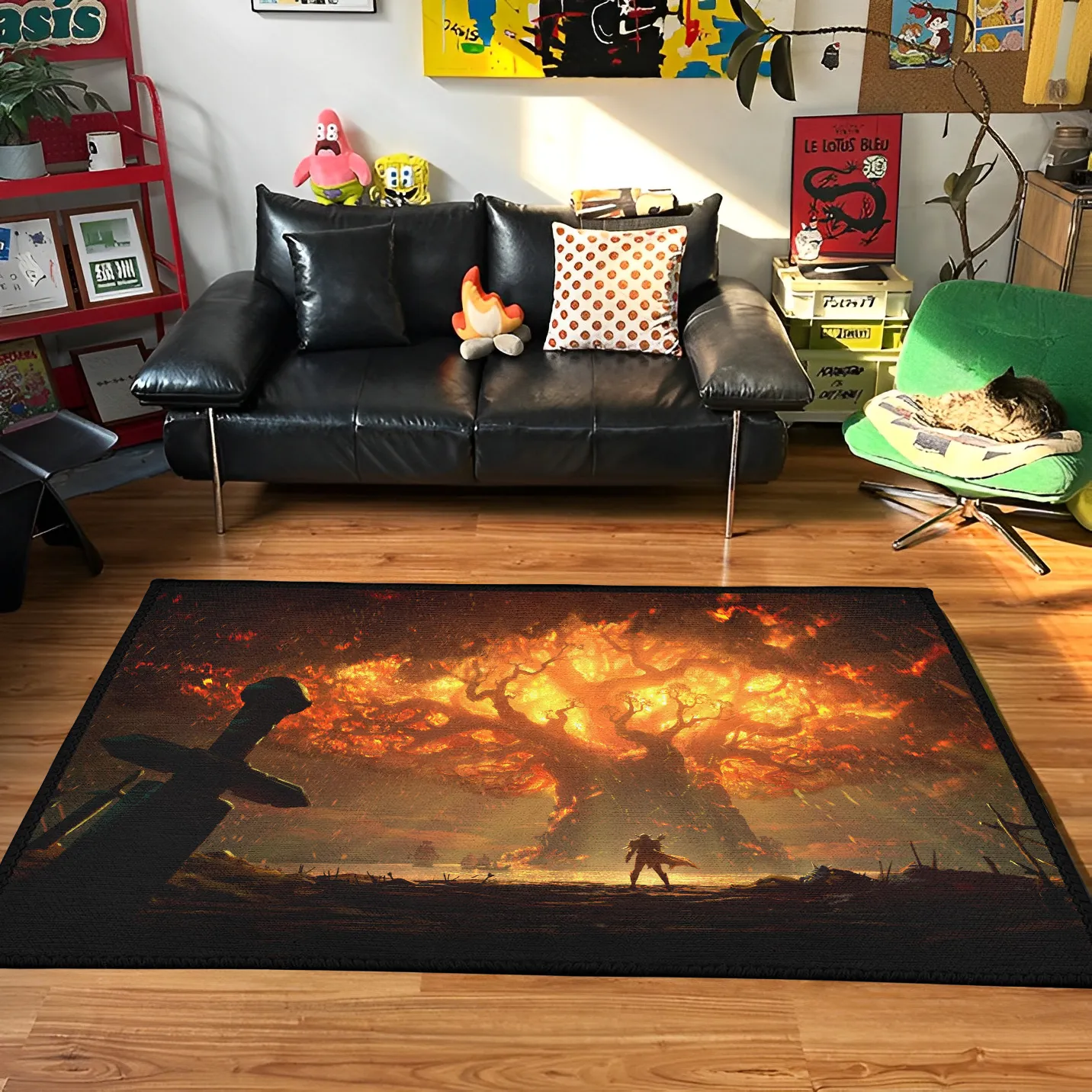 The Yggdrasill Rug depicts the mythical Norse tree, perfect for fantasy rooms or Norse mythology-themed decor.
